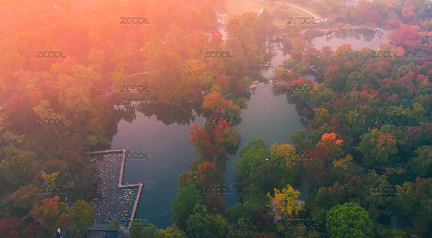 鸟瞰杭州西湖风景区秋天的杨公堤
