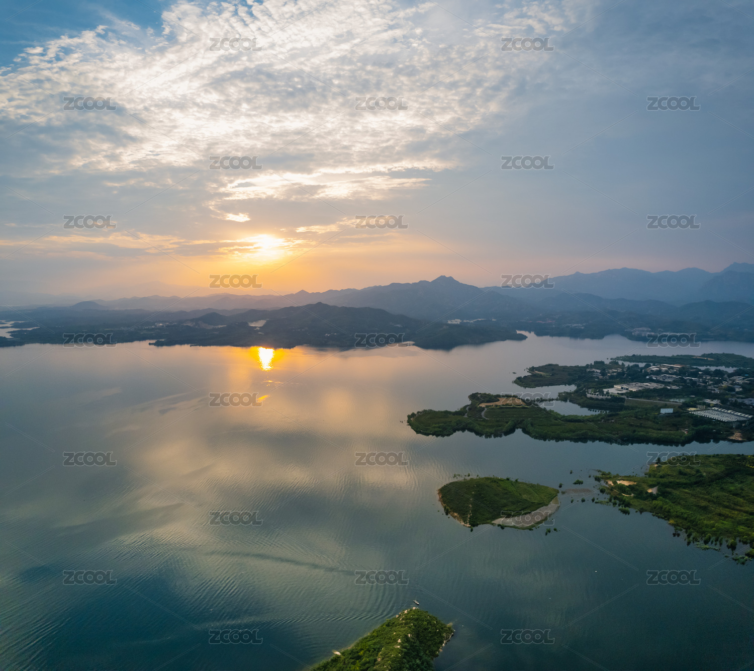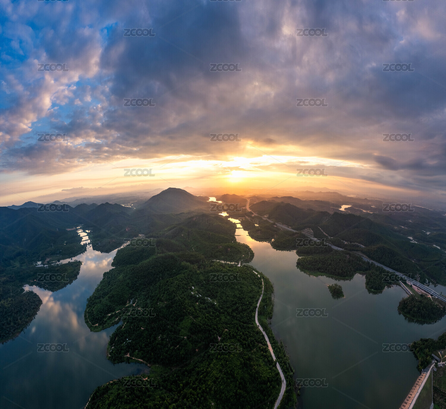 江门龙门水库夕阳晚霞戏剧性的天空水面