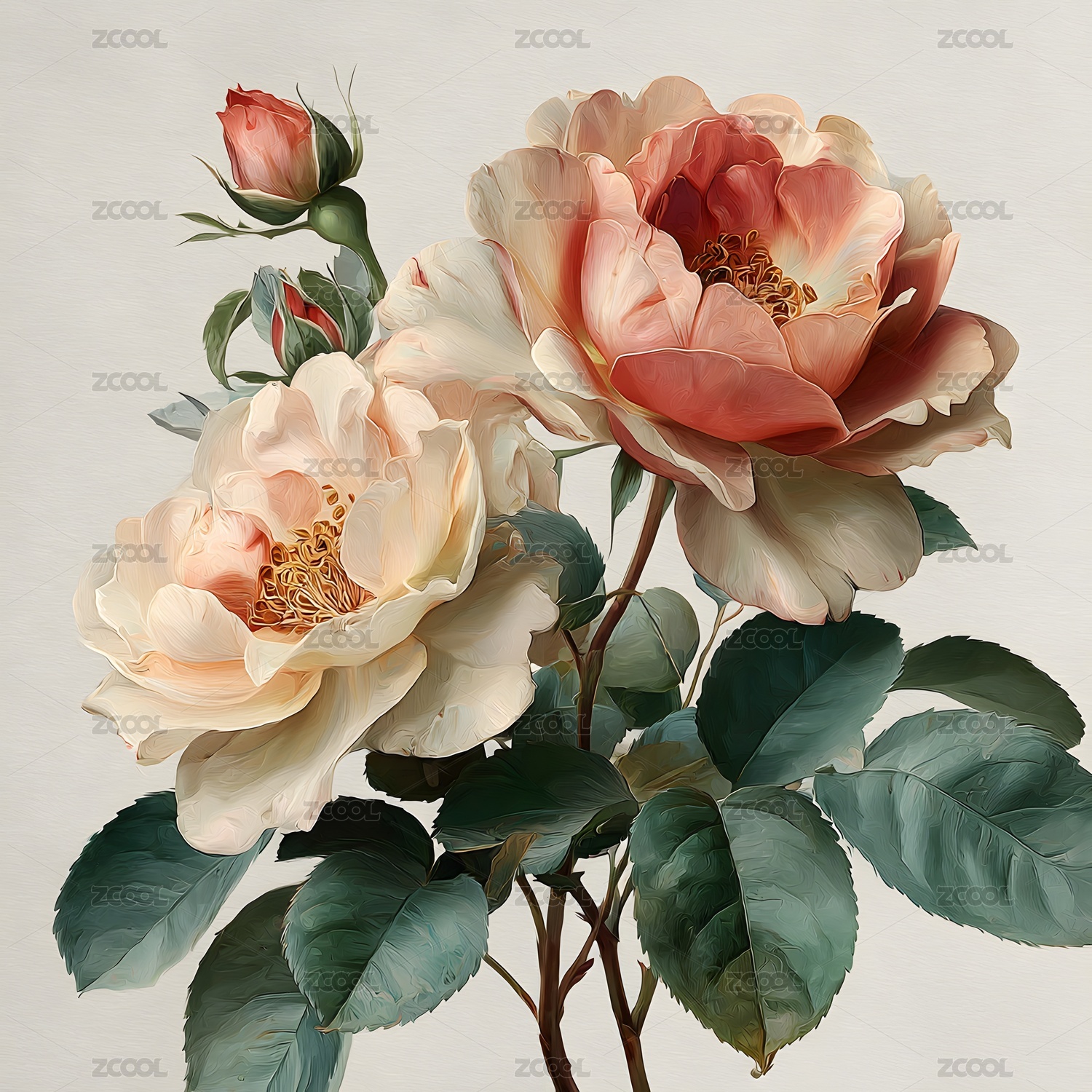 复古风格玫瑰花卉插画