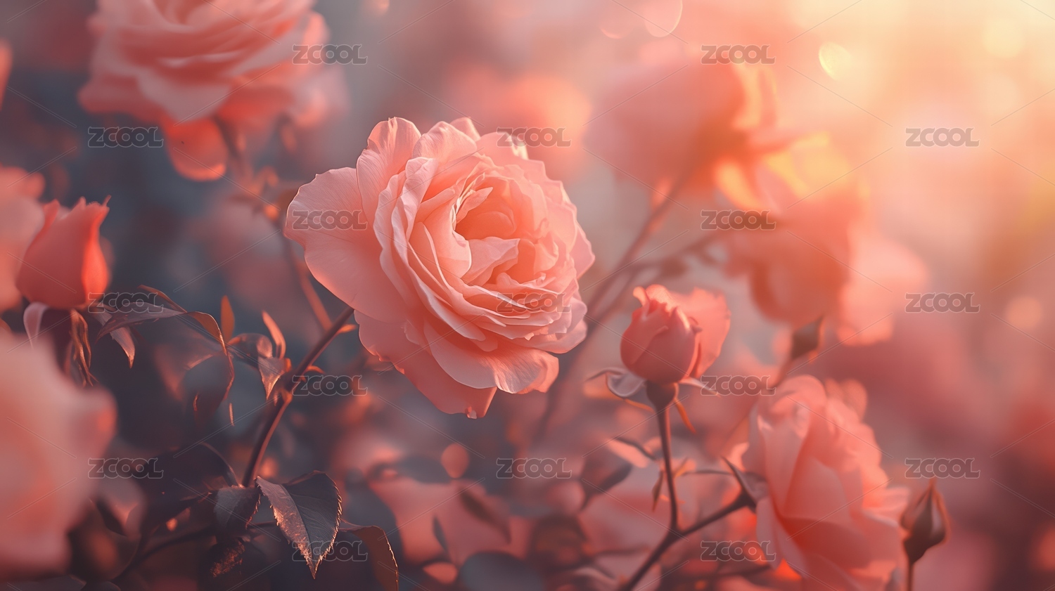 夕阳下绽放的美丽玫瑰花