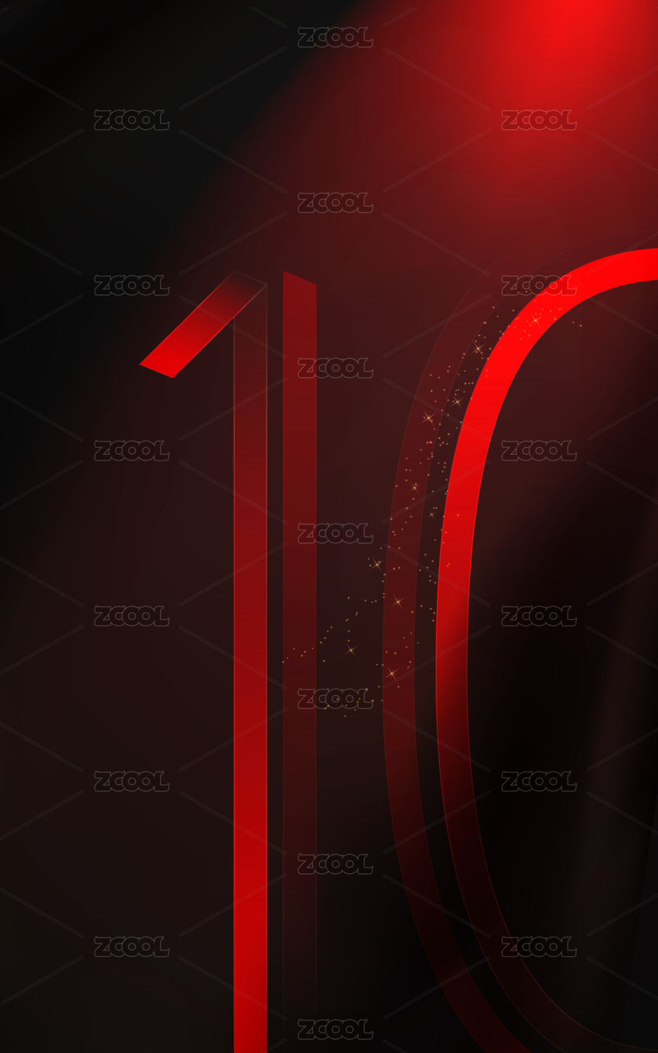黑色背景红色质感重影条纹数字10创意海报