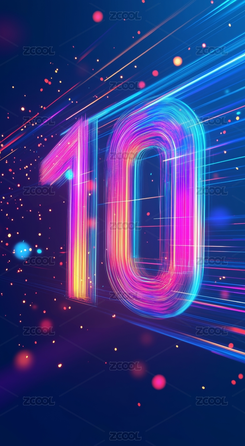 霓虹数字10的炫彩艺术表现