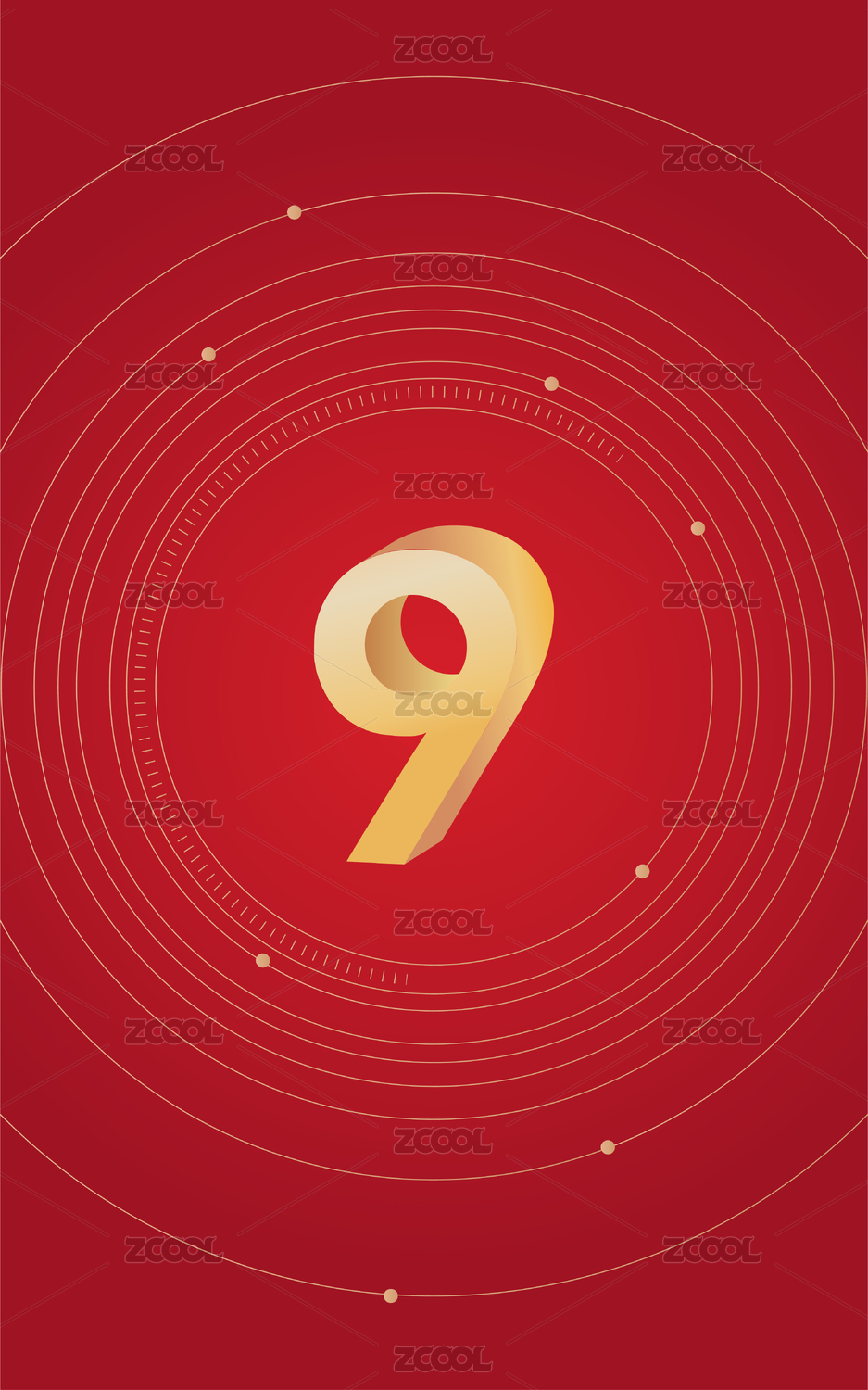 红色背景金色线条庆典数字10质感创意海报