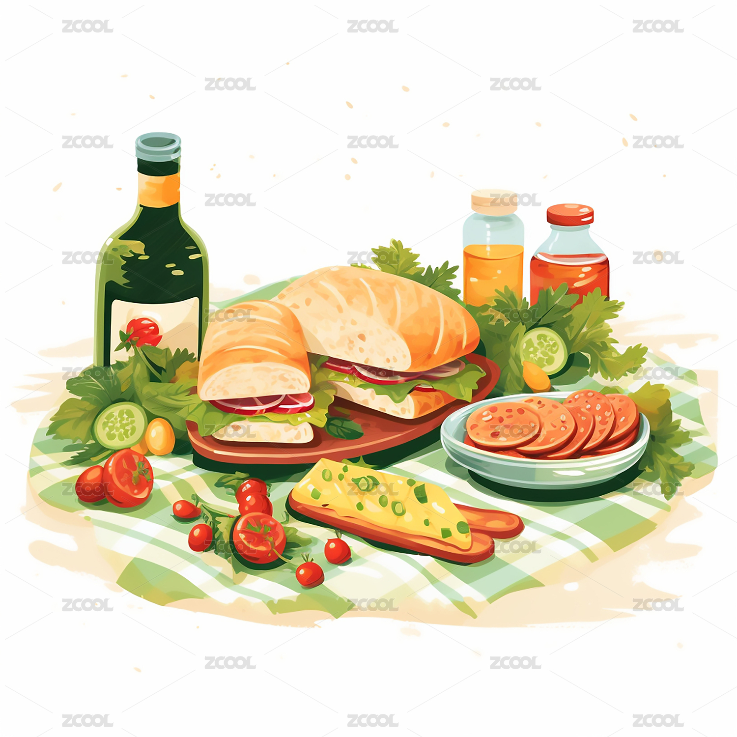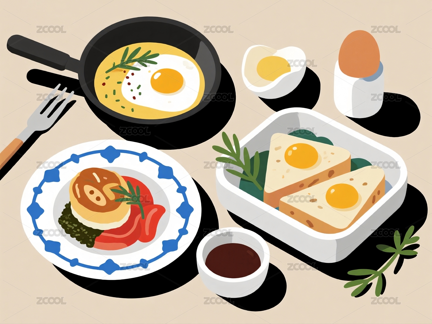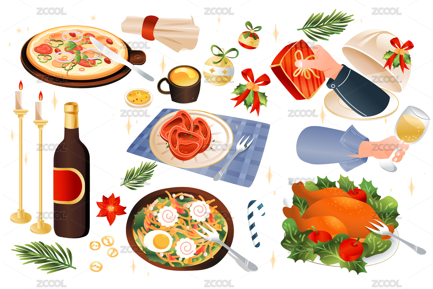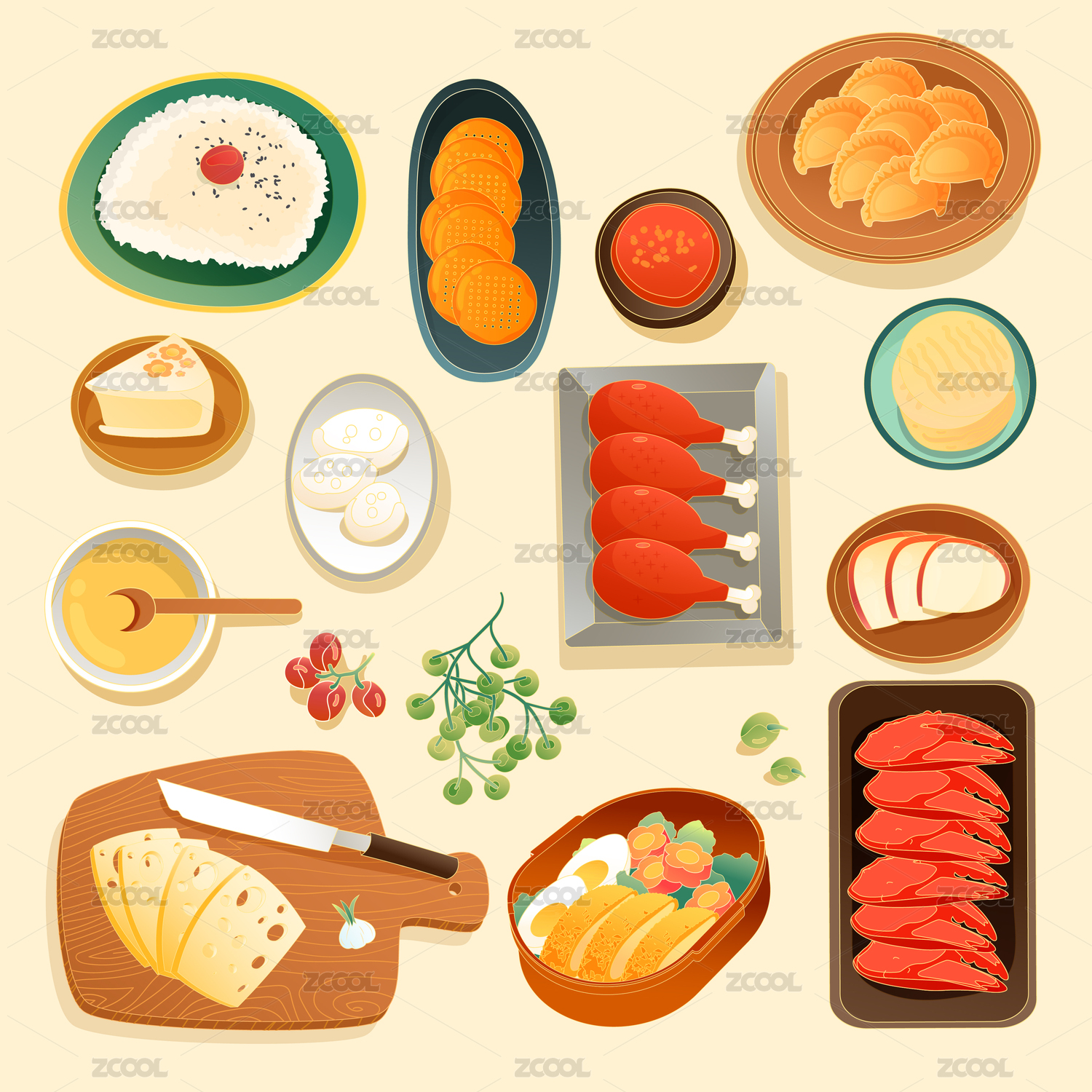 健康午餐美味小吃节日文化早餐晚餐美食插画