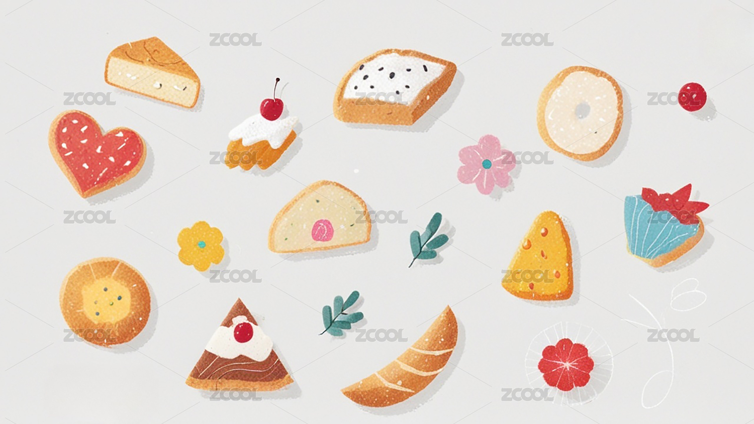 面包坊,小熊面包房,吐司,可颂,厨师帽,鸡蛋,菠萝包,牛奶,甜甜圈,法棍