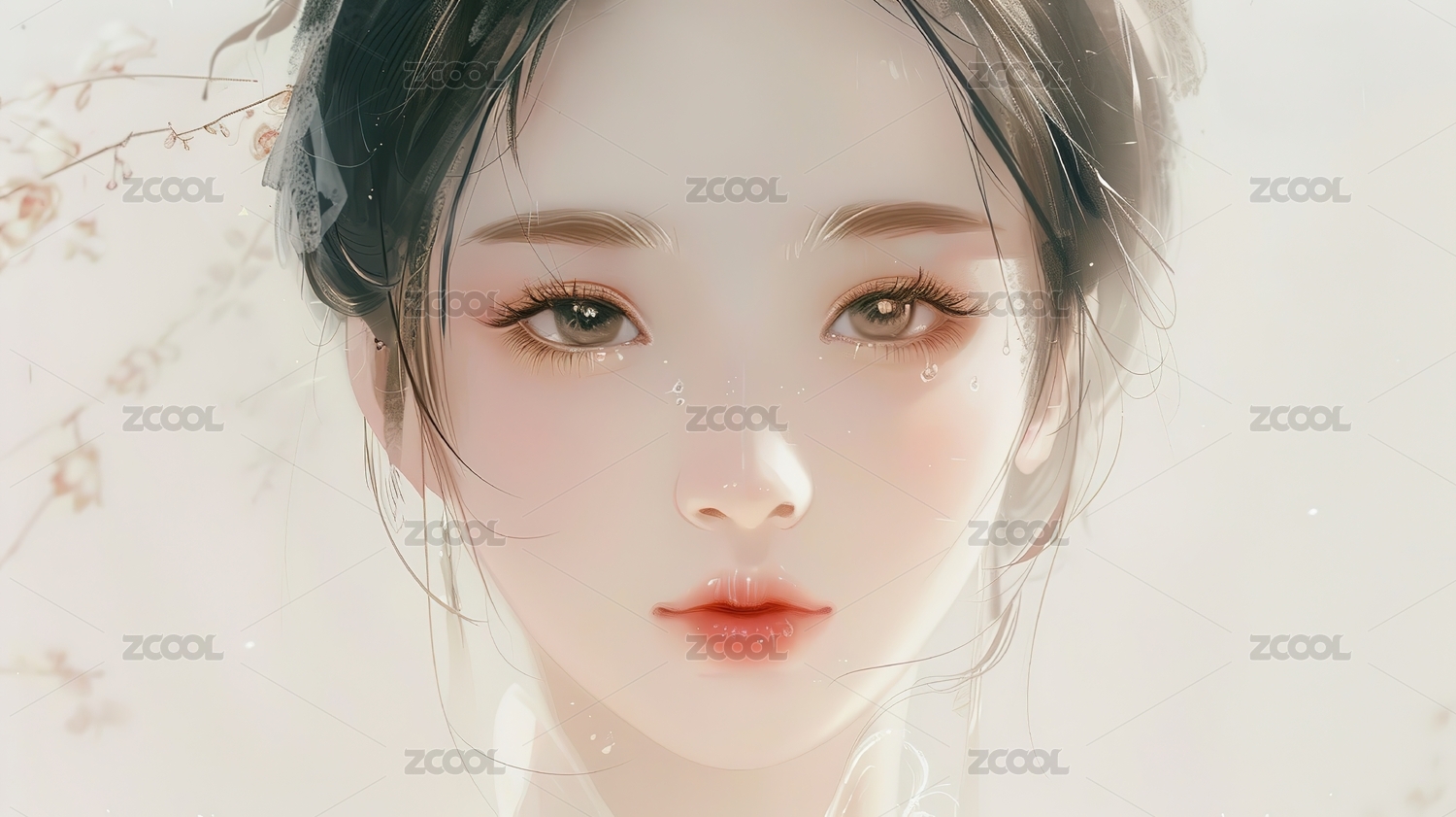 水墨古风美女桃花枝头