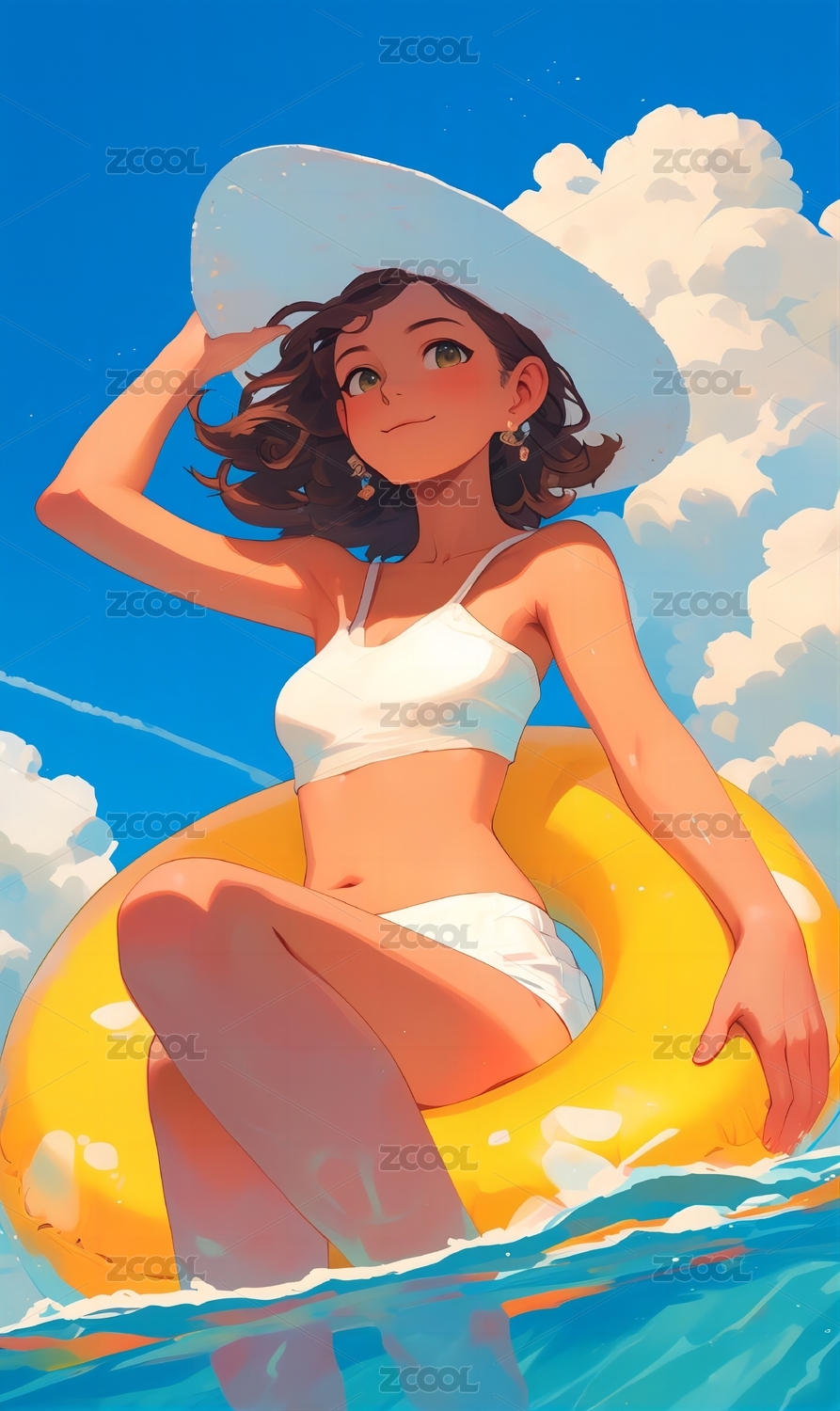 活力四射的夏日场景,卡通泳装少女