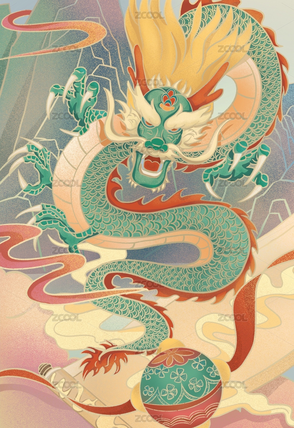 国风神话新年龙年插画设计