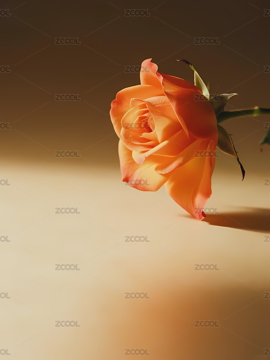 柔和光影下的橙色玫瑰