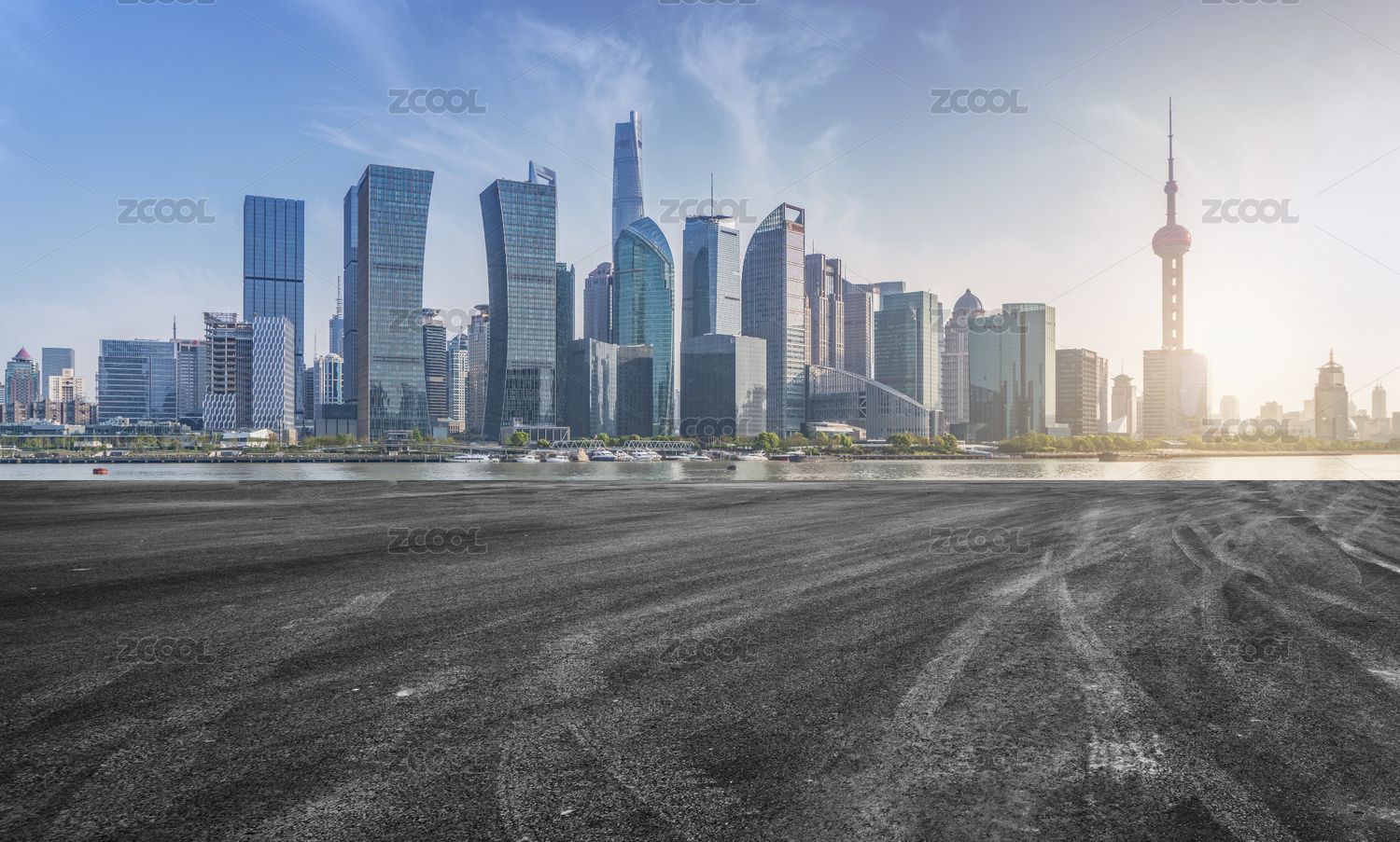 沥青路面和上海金融区建筑景观