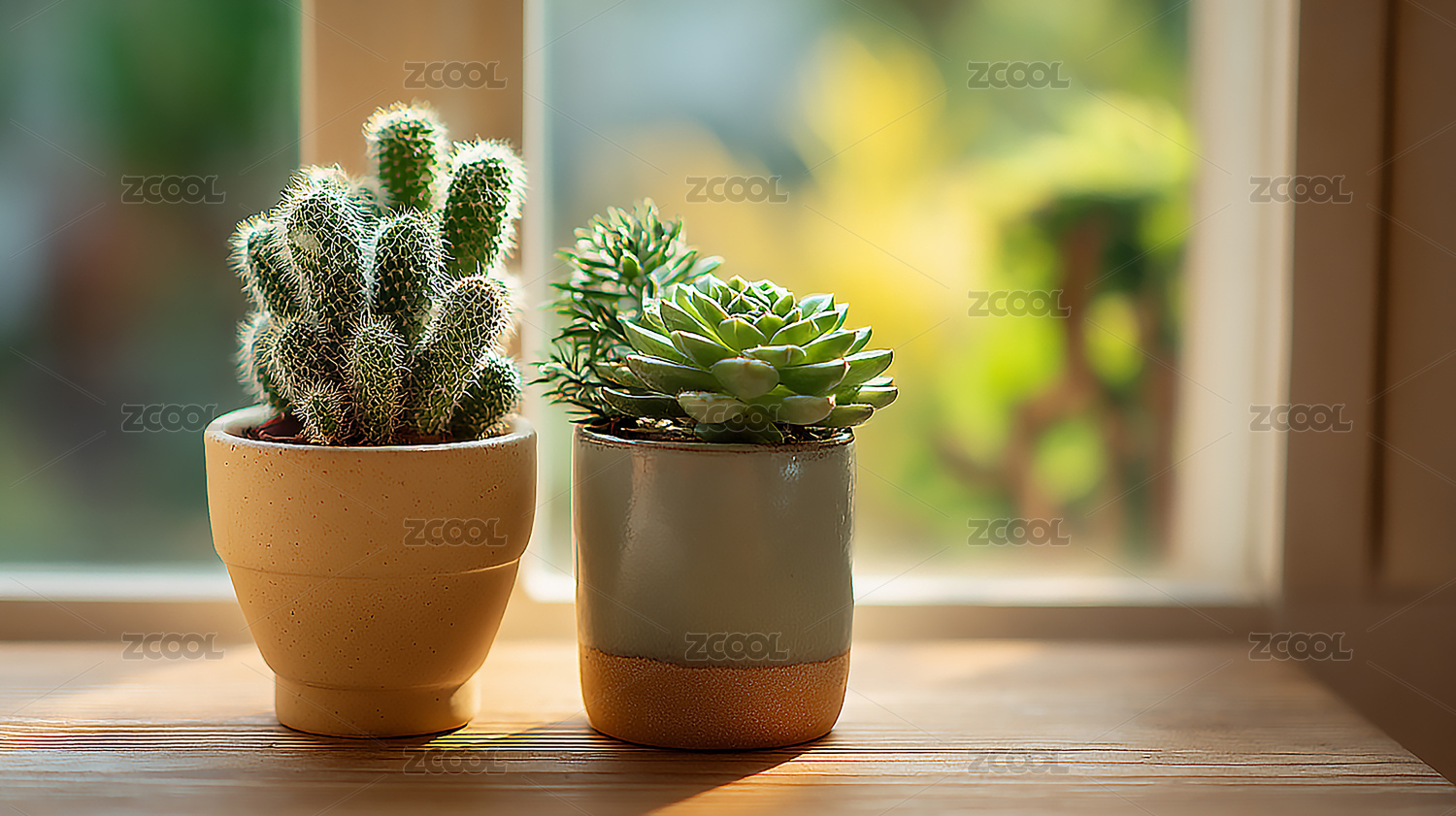 窗台上的仙人掌盆栽主题