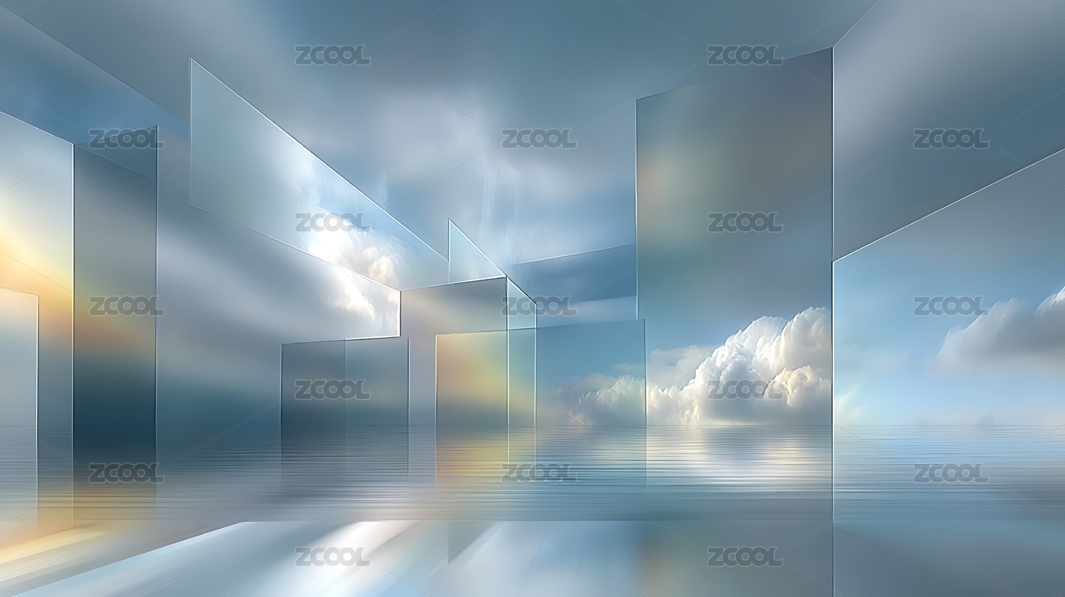 蓝天,白云,山脉,水面,倒影,立柱,光线,云层,反射,平静