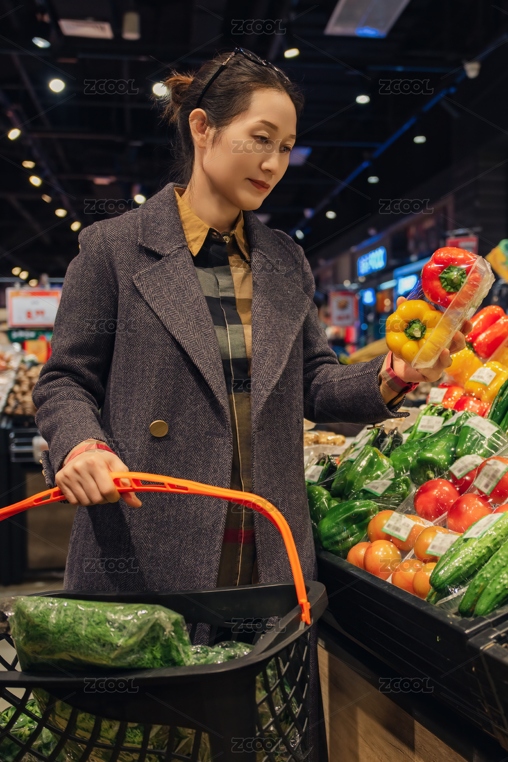 女人,杂货店,购物,新鲜,蔬菜,超市,健康,饮食,充满活力,颜色