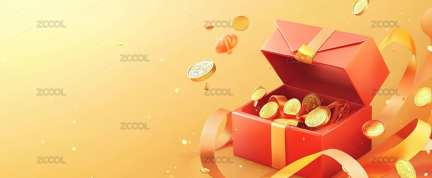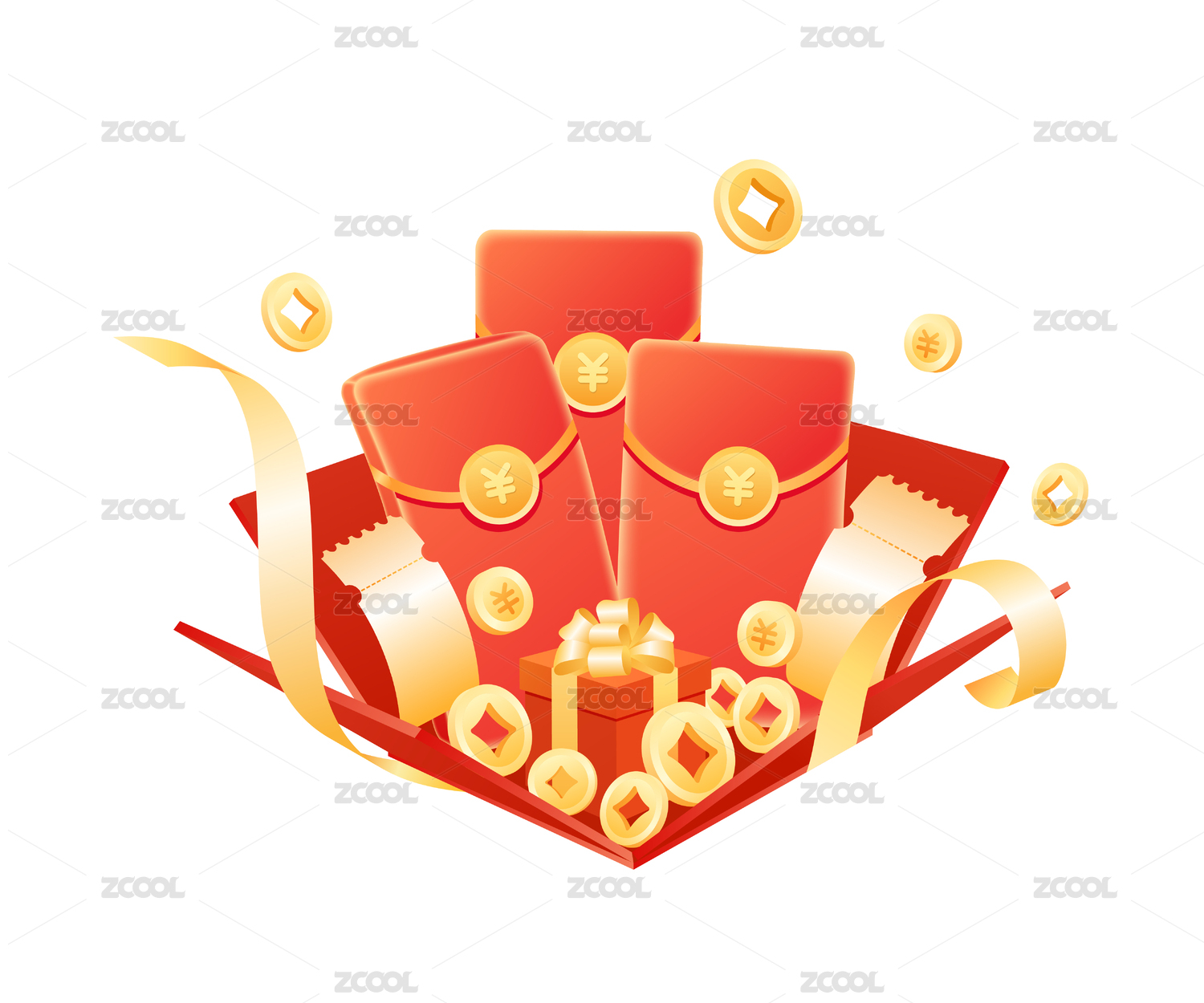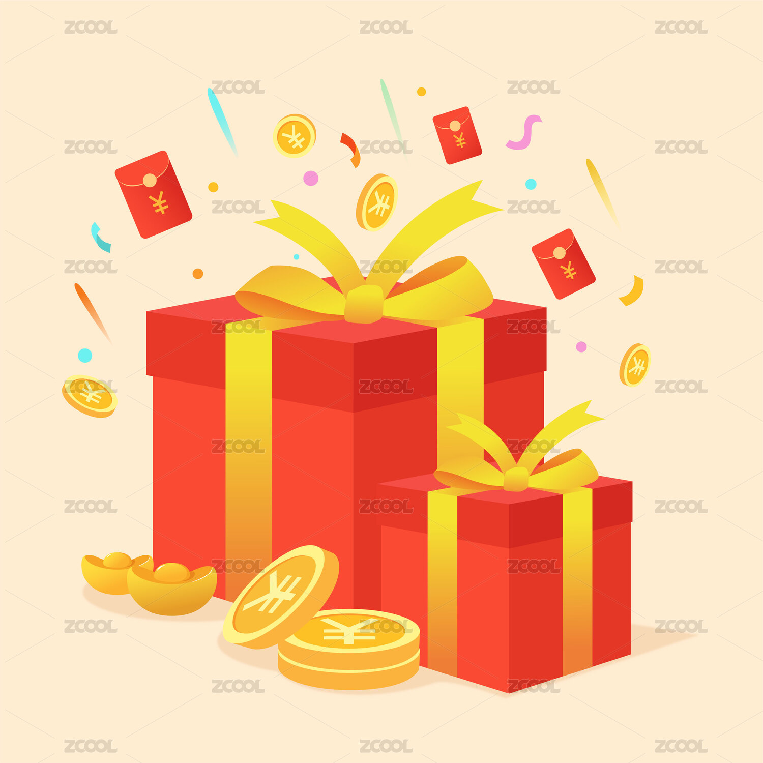 礼盒金币红包雨优惠券电商促销矢量插画元素