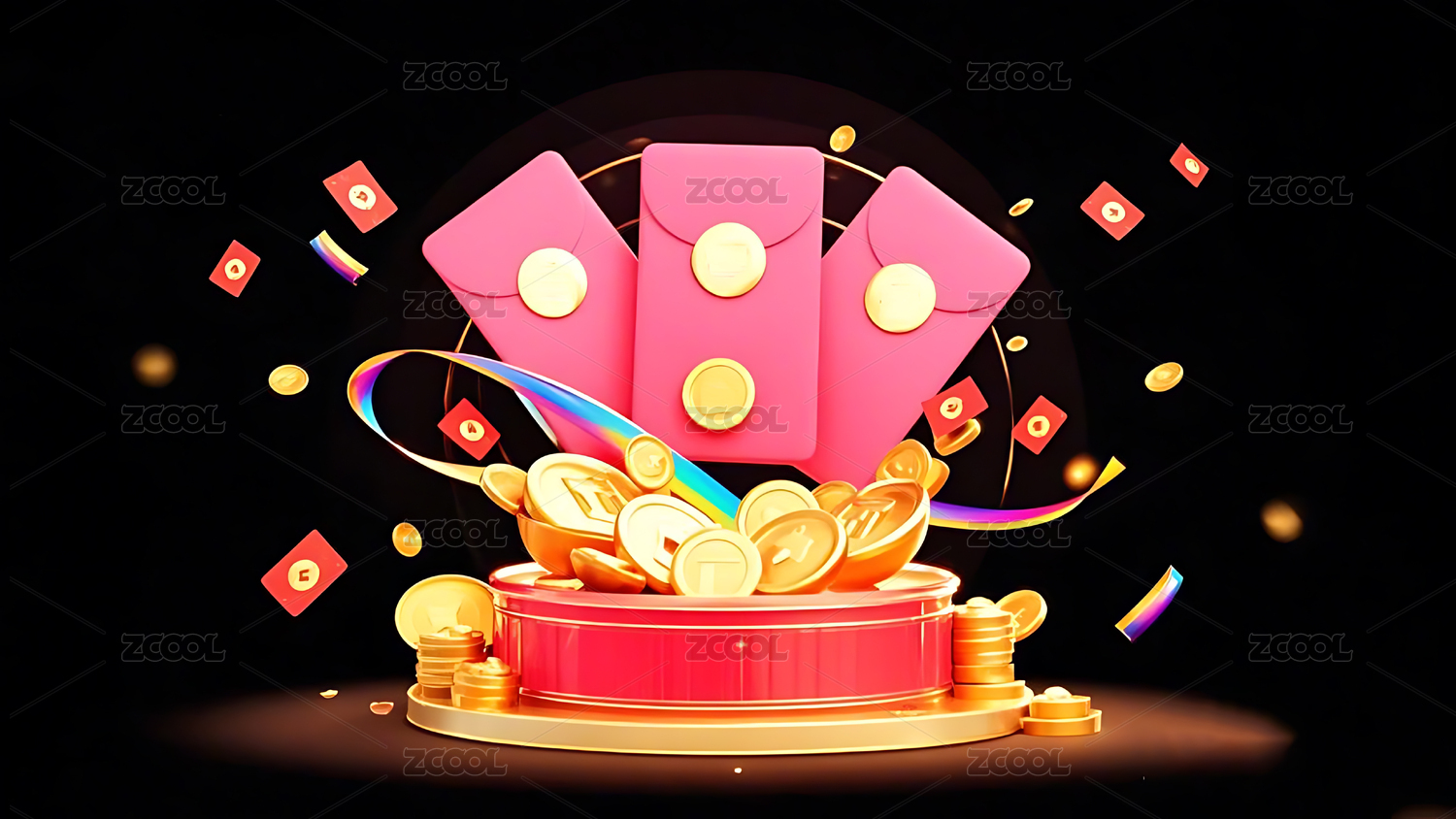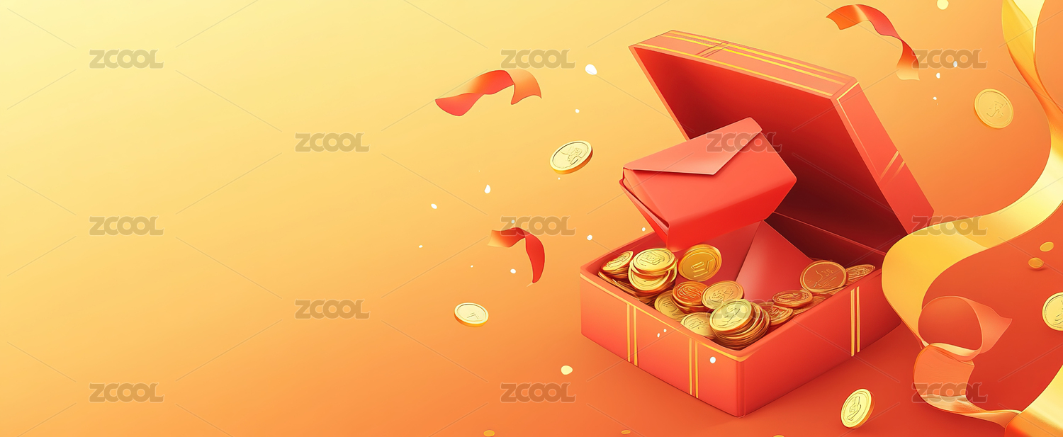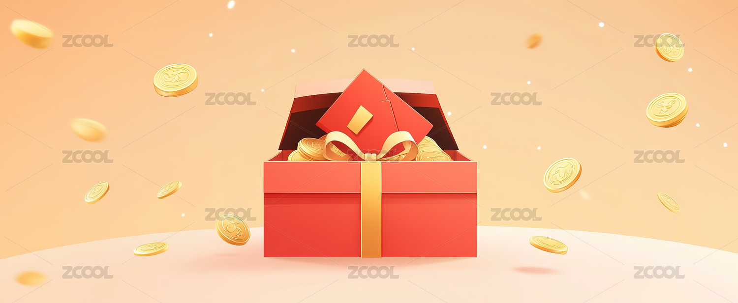 礼盒金币红包雨优惠券电商促销矢量插画元素