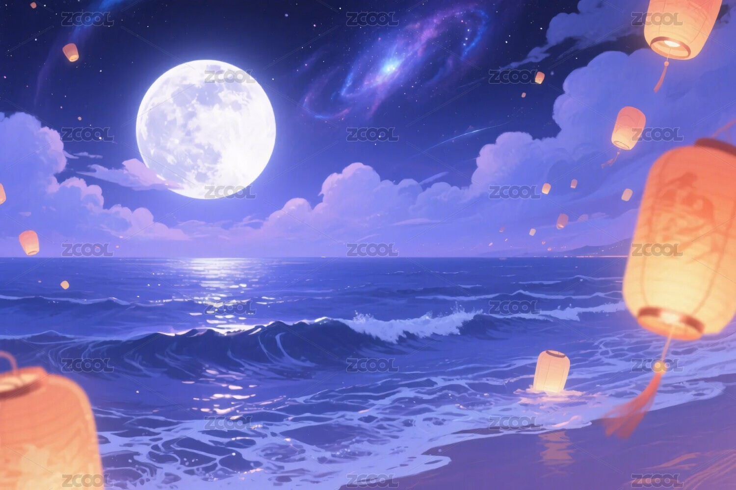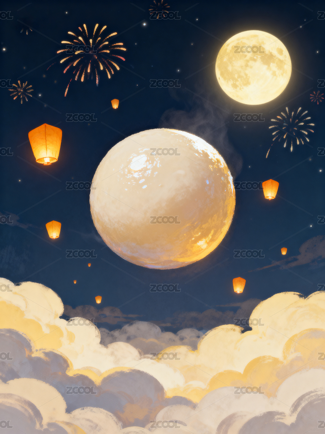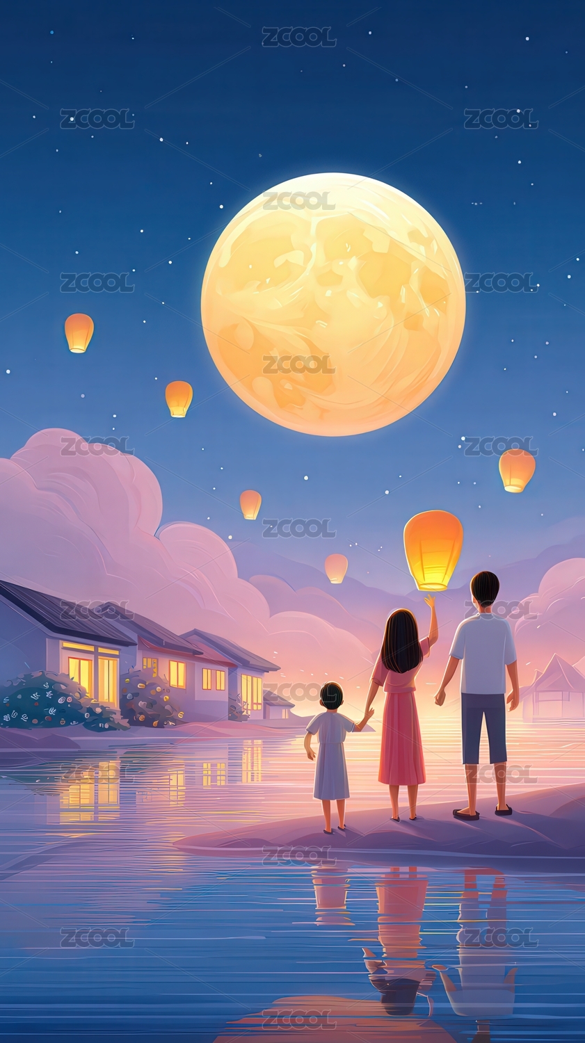 赏月,月亮,中秋,中秋节,月兔,月饼,插画,萌,漫画,彩色