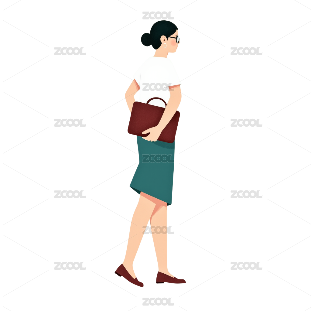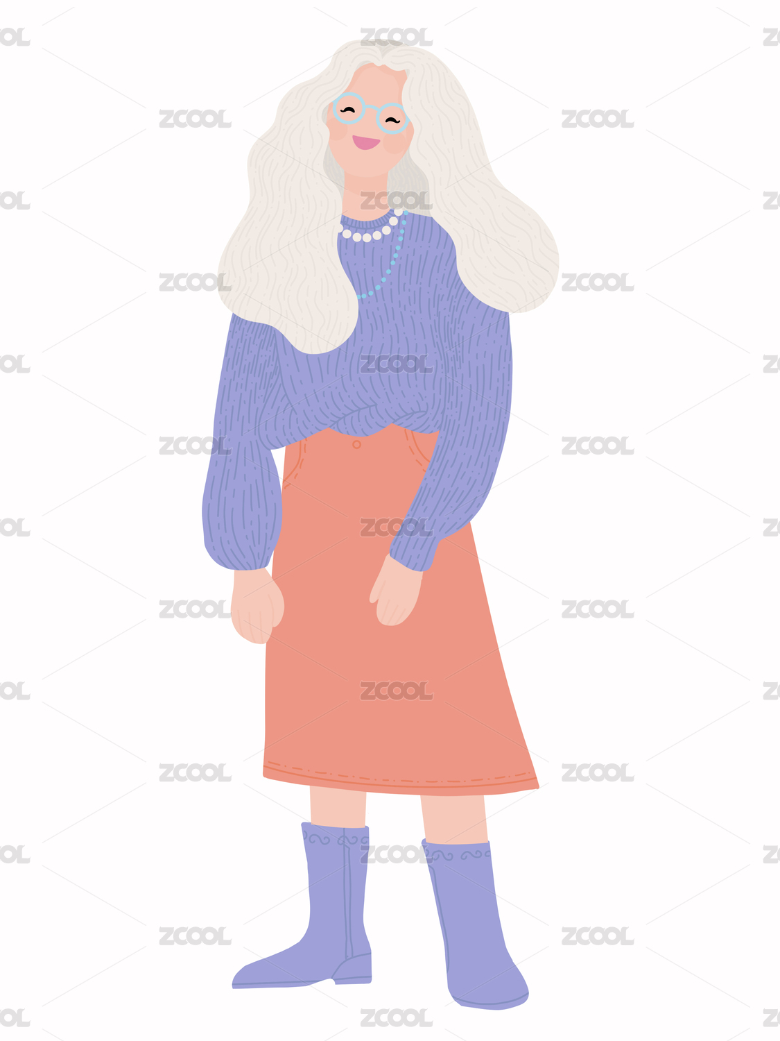 时尚奶奶扁平风时髦老年人秋天穿搭手绘插画
