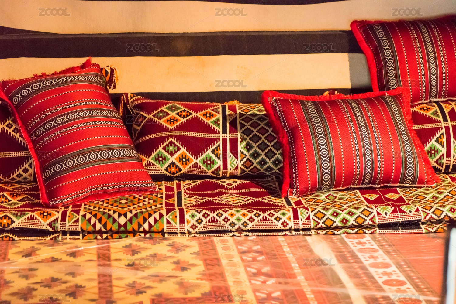 地中海风格的室内居家用品——有花纹的红色靠垫