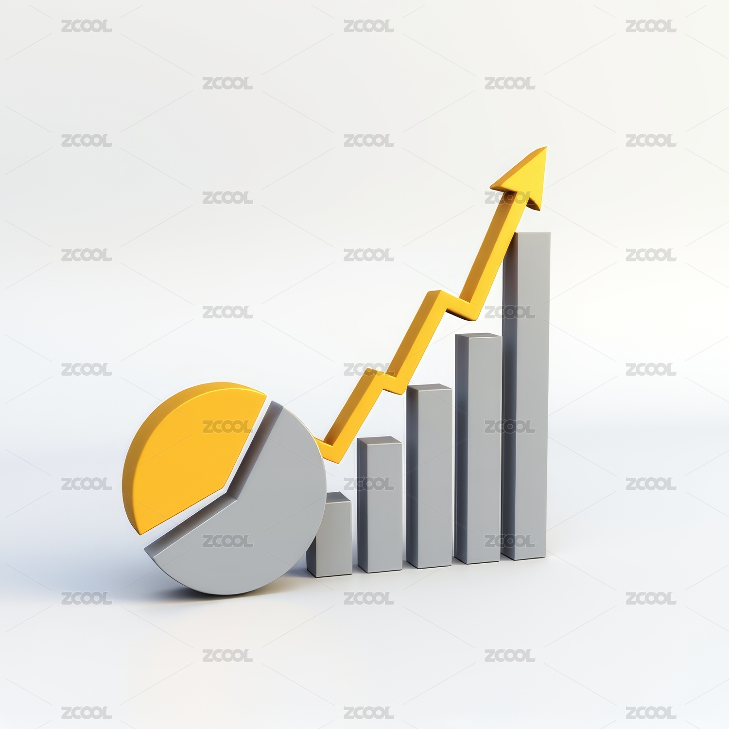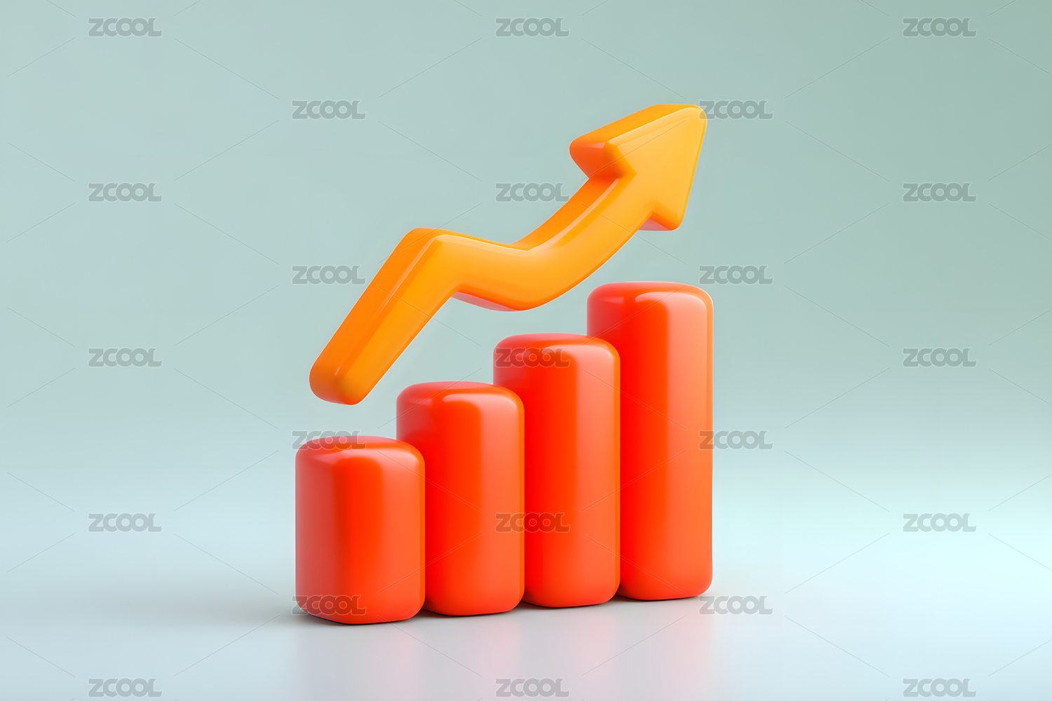 红色立体上升箭头与柱状图组合图
