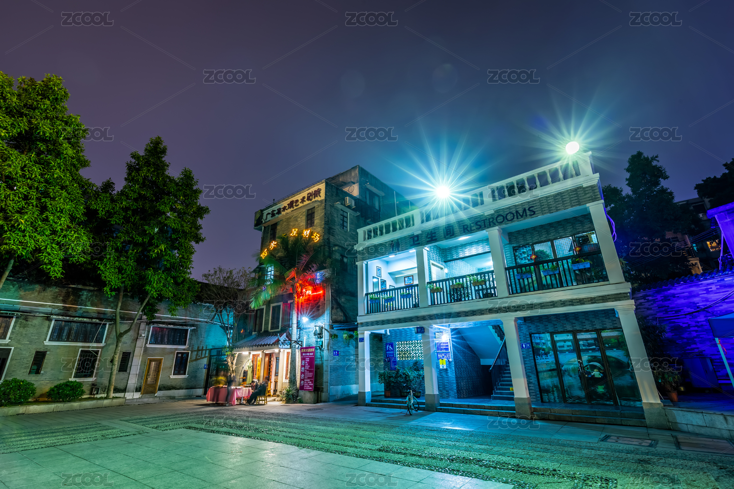 佛山岭南天地龙塘诗社中式传统建筑夜景灯光