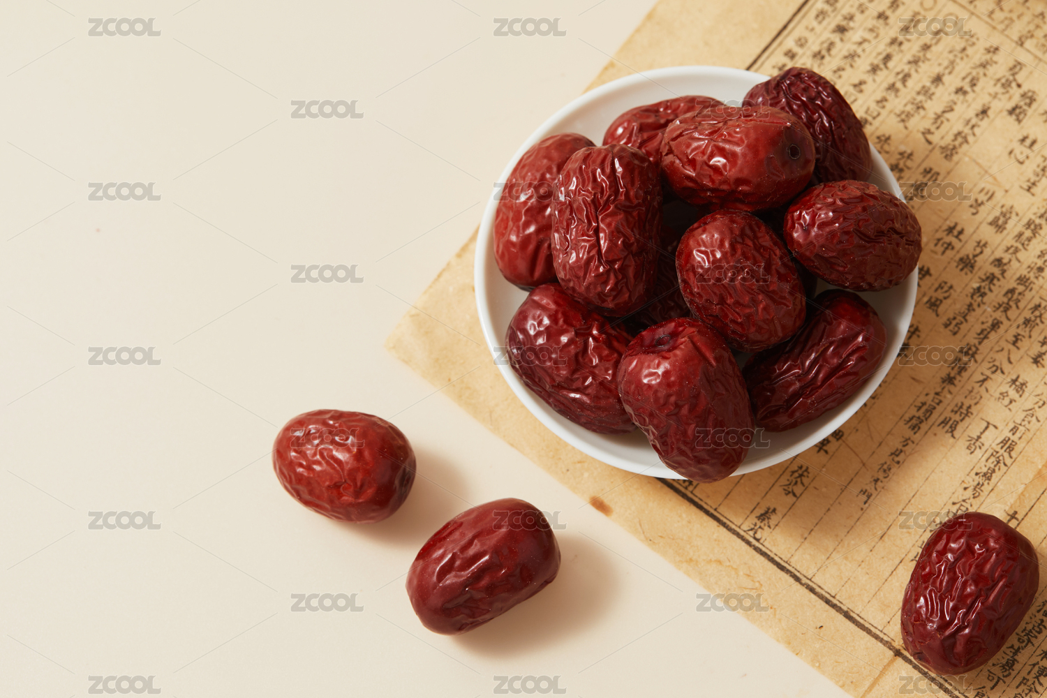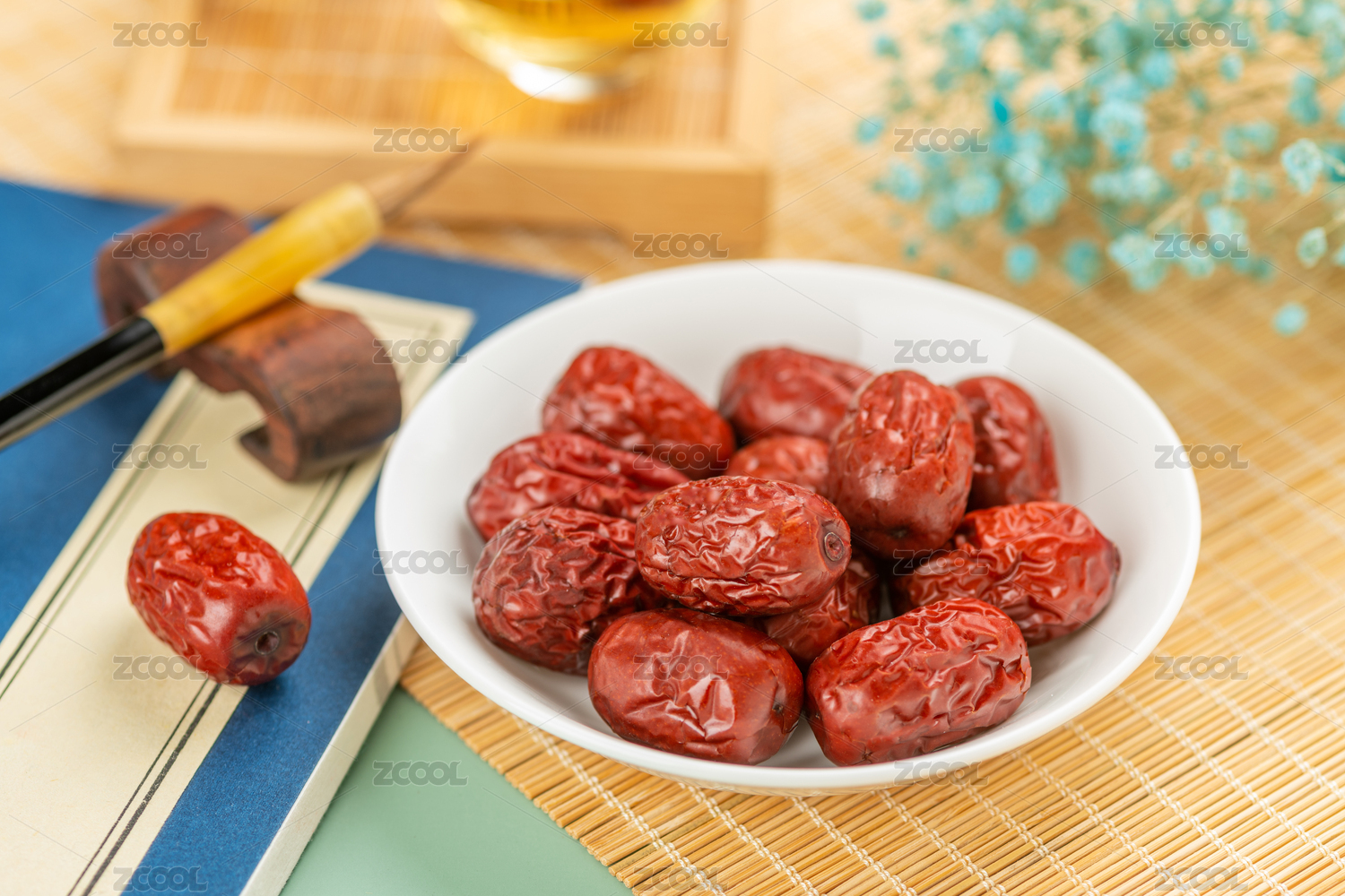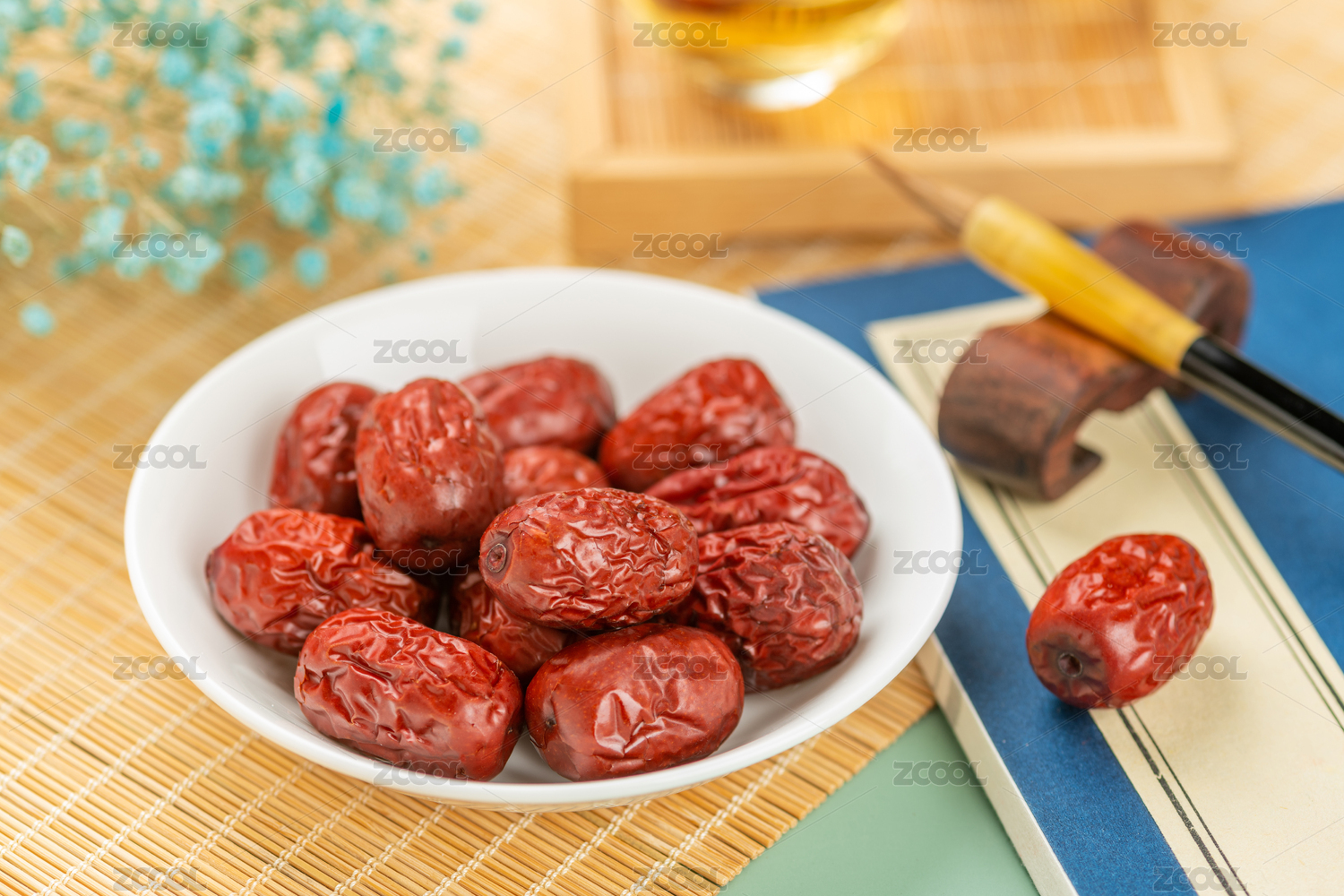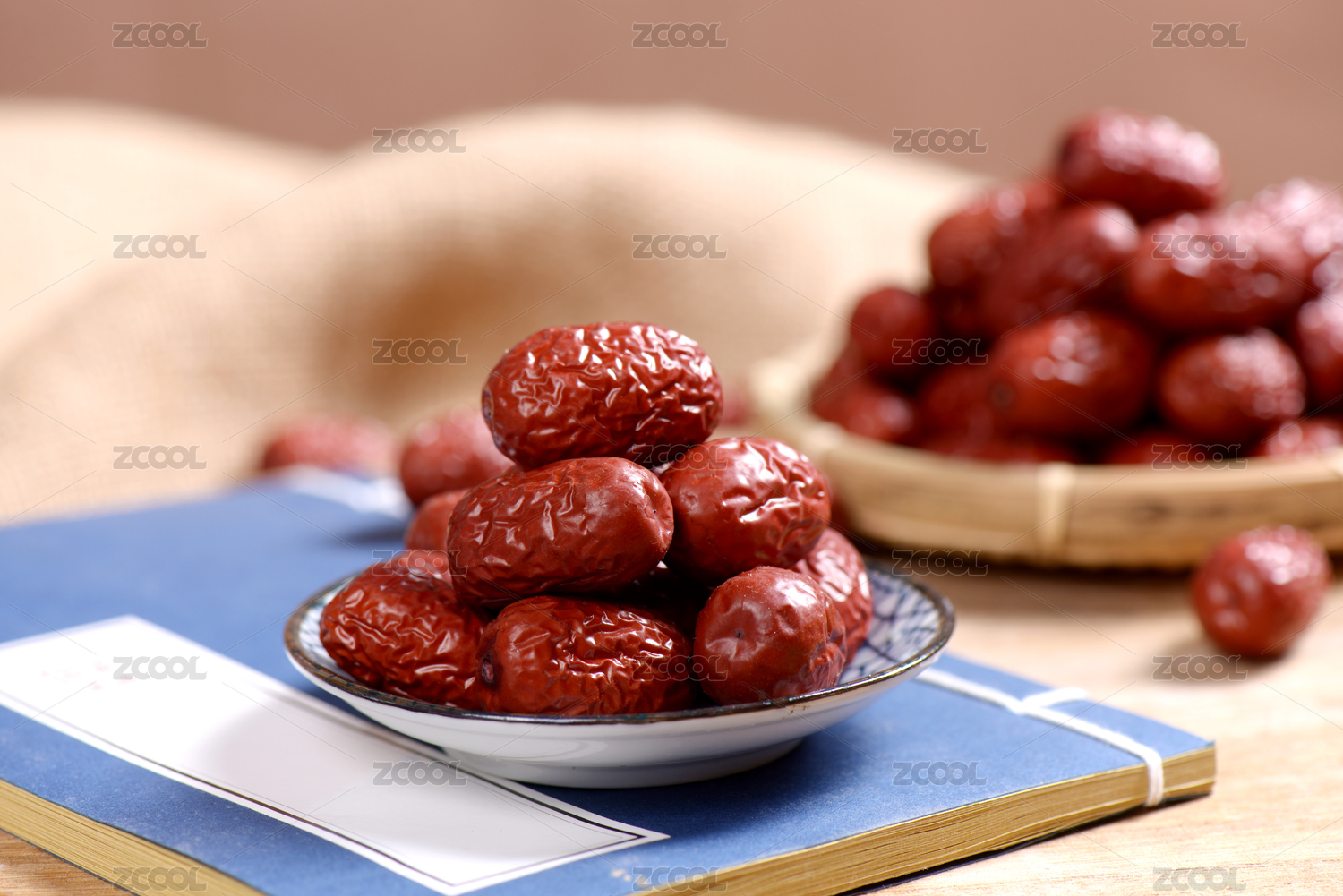 滋补佳品红枣特写绿色莫兰迪色系背景