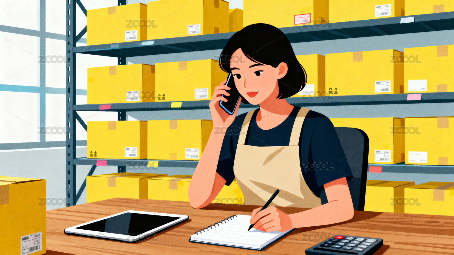 五一劳动节搬运工仓库搬货快递包裹概念插画