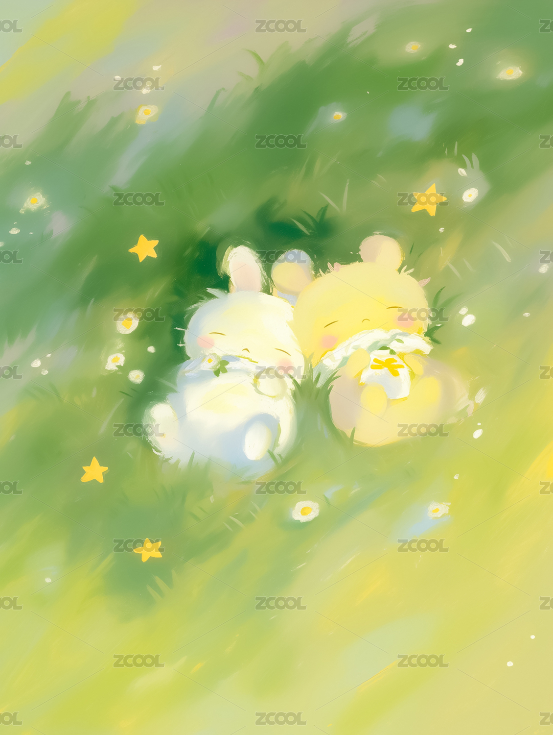 装饰画插画儿童房喷绘高清大图可爱温馨兔子