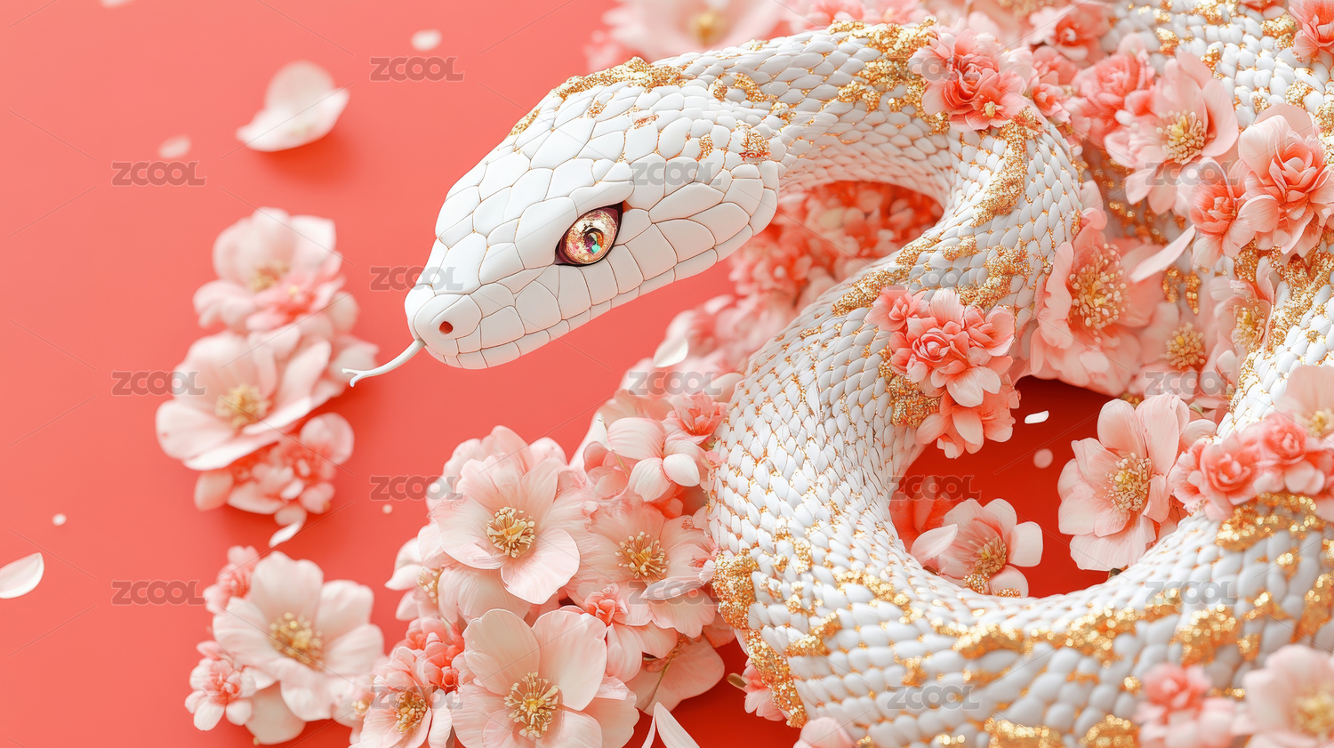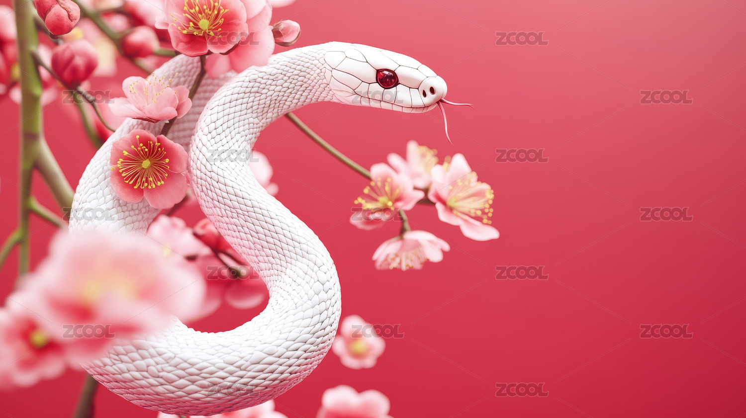 玉质白蛇与红花