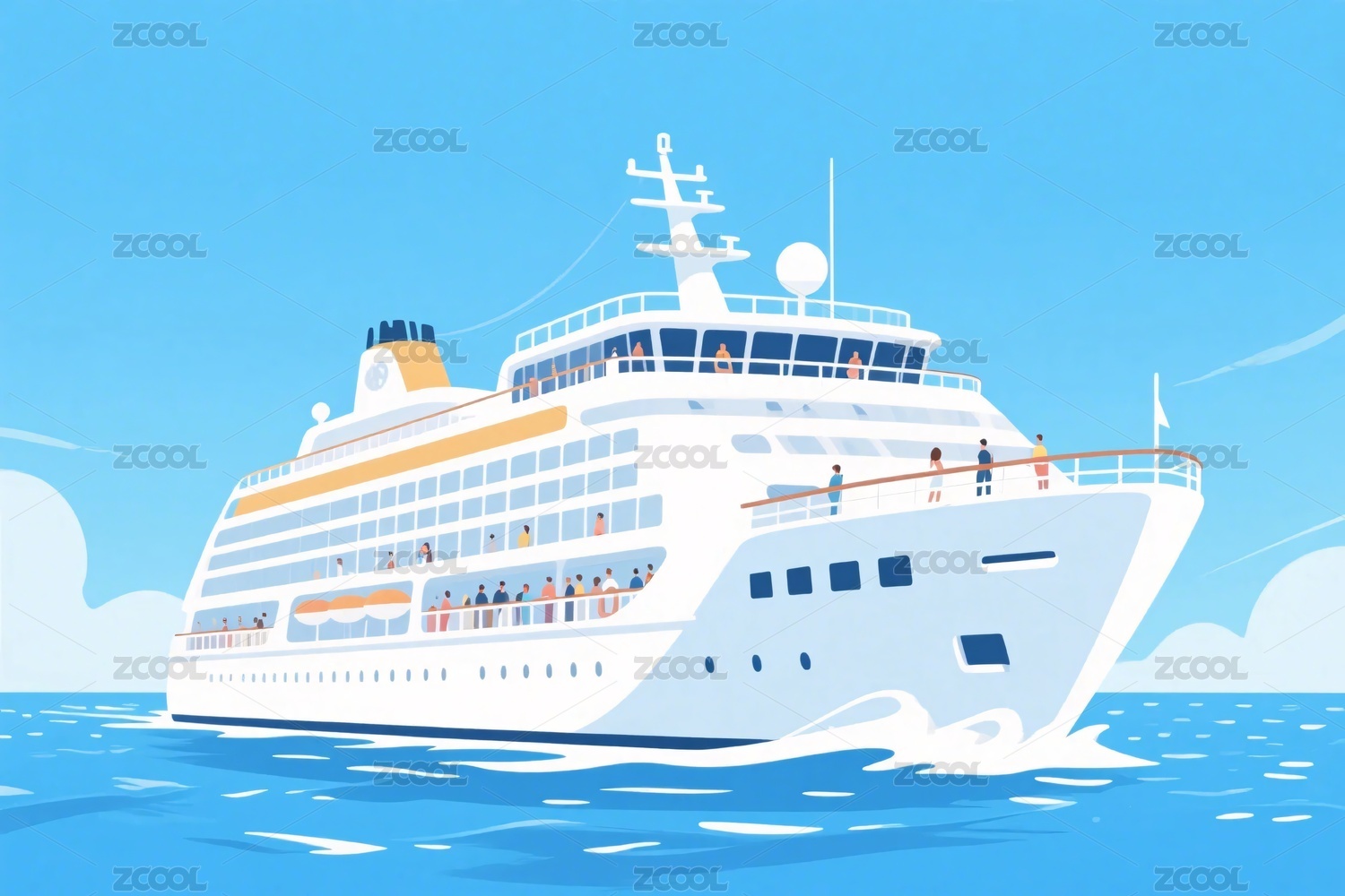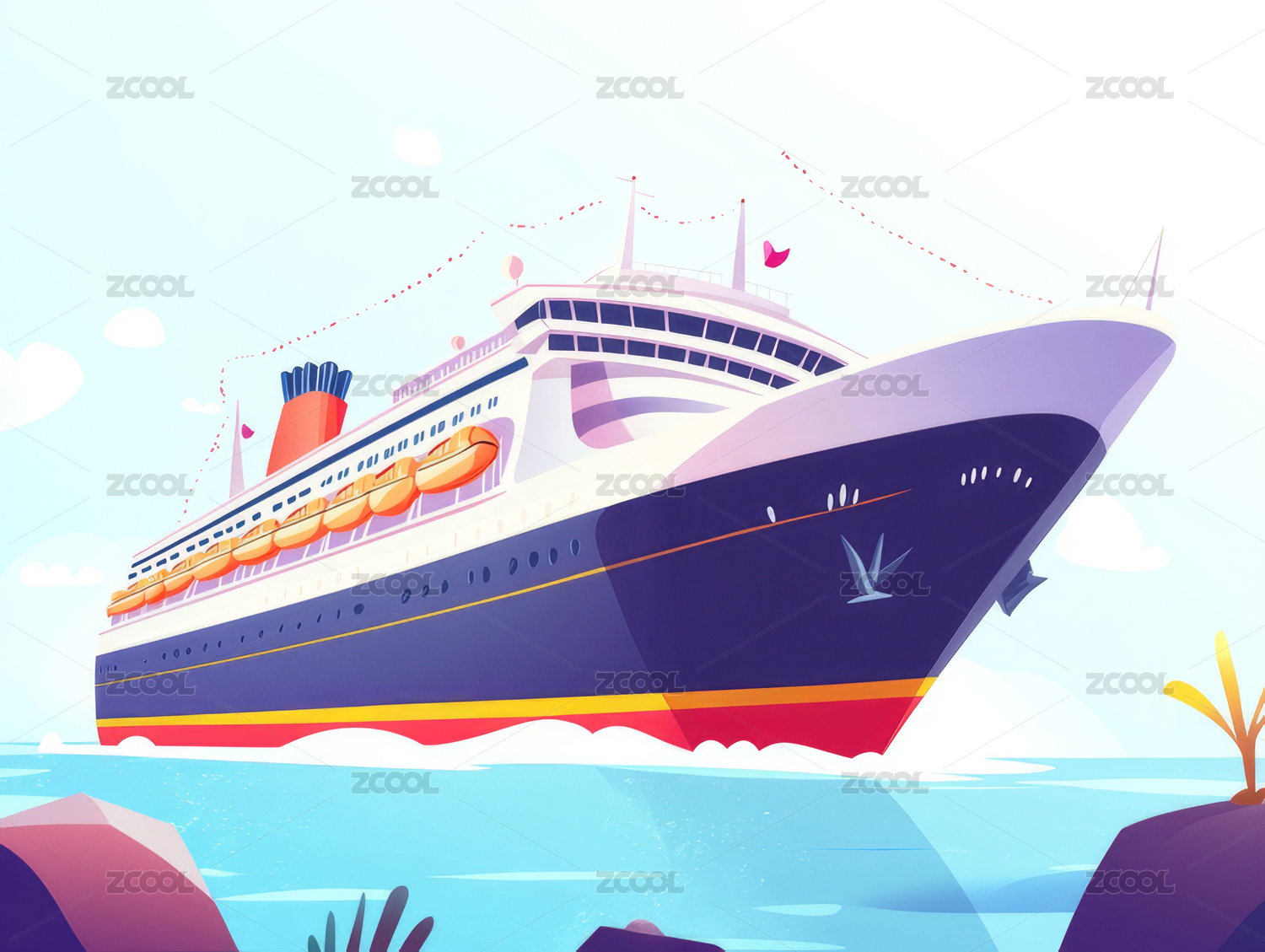插画风格的海上游轮