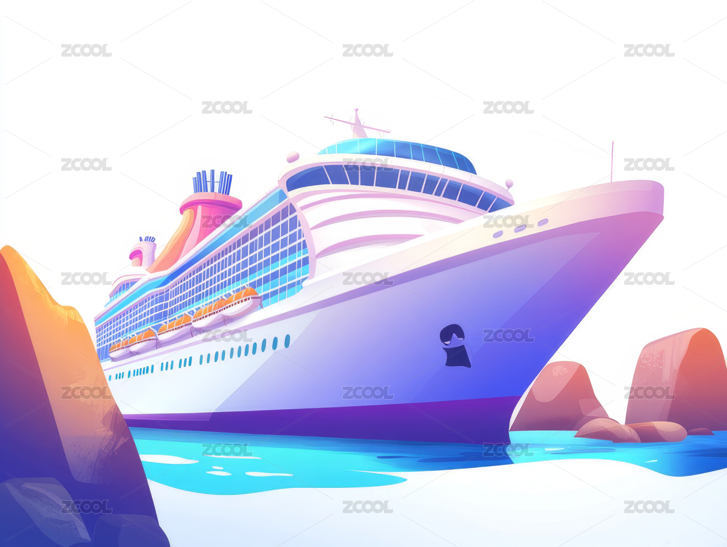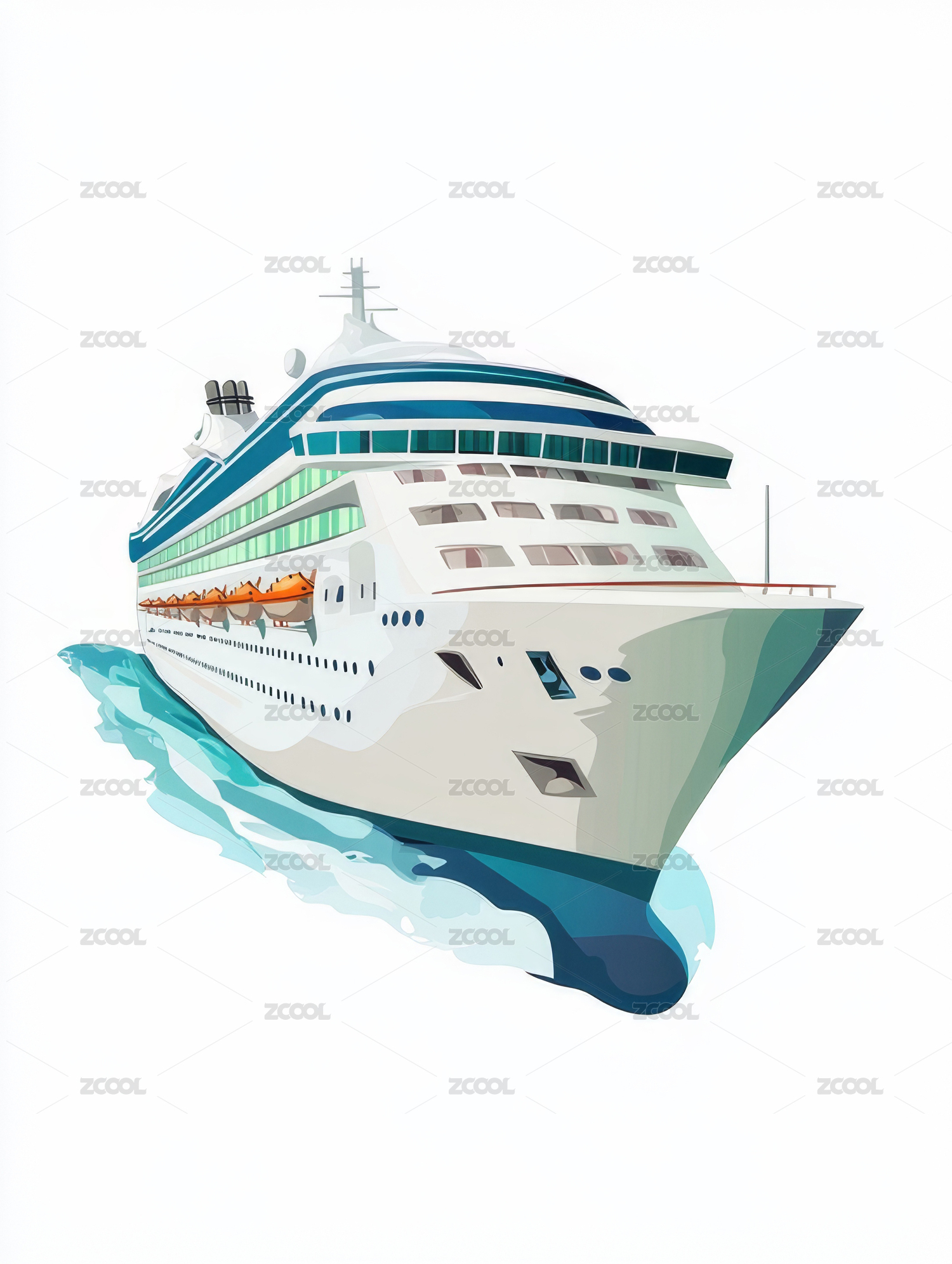 彩色邮轮航行图