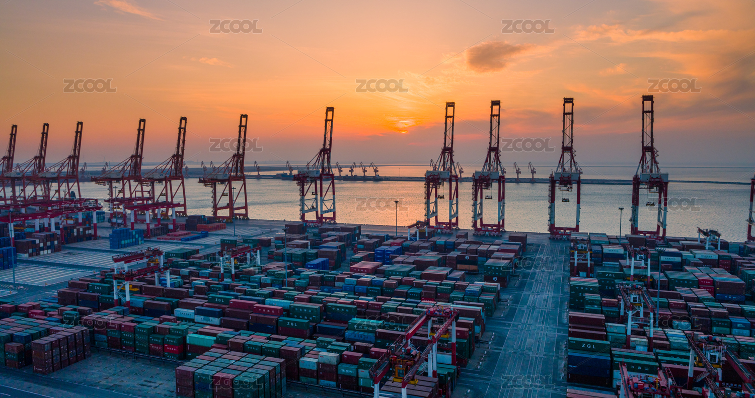 大型集装箱港口堆叠的集装箱和起重机夜景