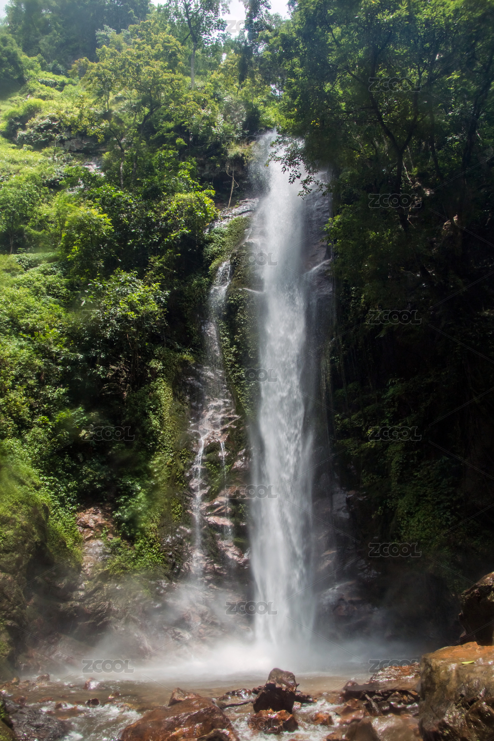 中国陕西汉中宁强大巴山中禅家岩天坑的瀑布