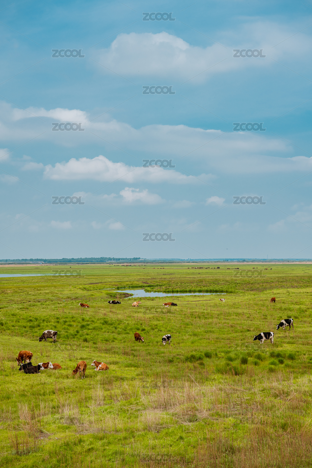 大庆杜尔伯特蒙古族自治区嫩江旁湿地草场牛