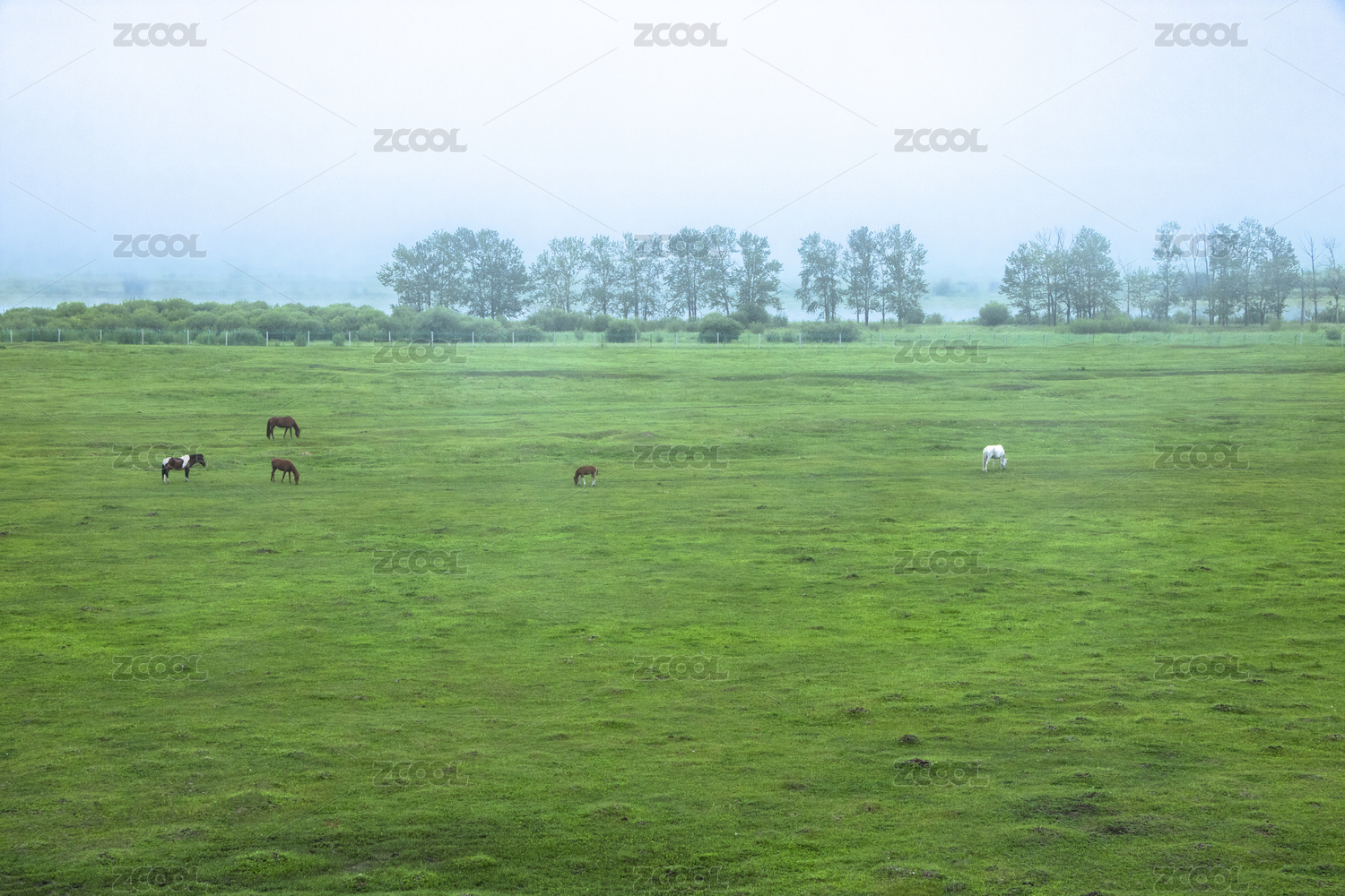 中国内蒙古自治区呼伦贝尔额尔古纳市室韦镇草地晨雾