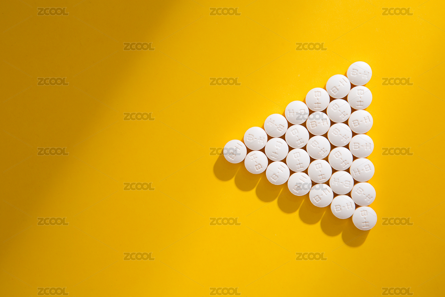 黄色背景上排列的白色药片