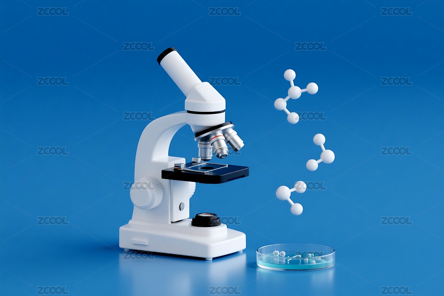 显微镜与生物分子背景3D渲染