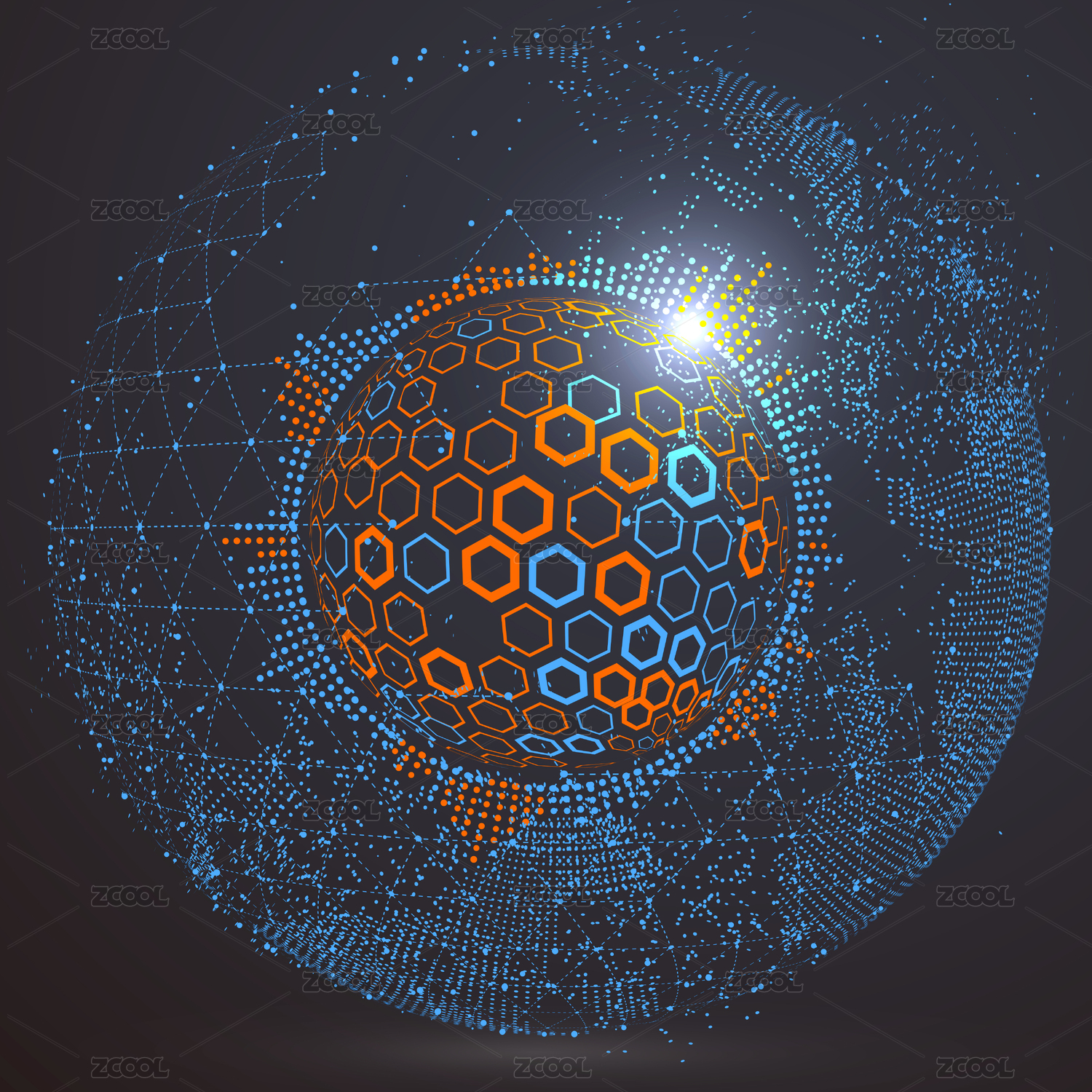 六边形网格组成的地球 代表了互联网、大数据和云计算