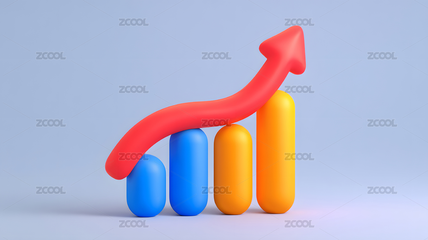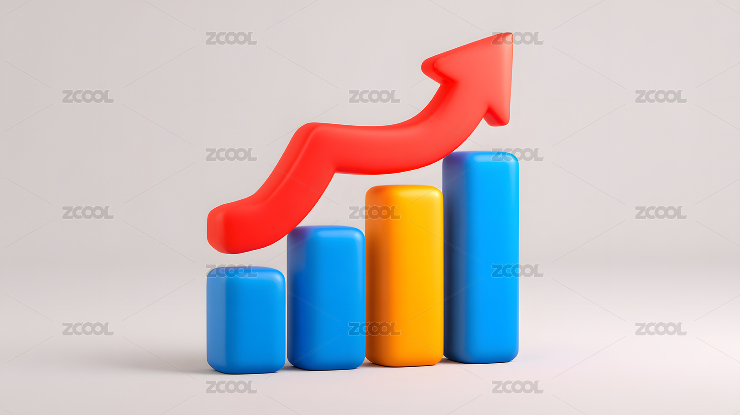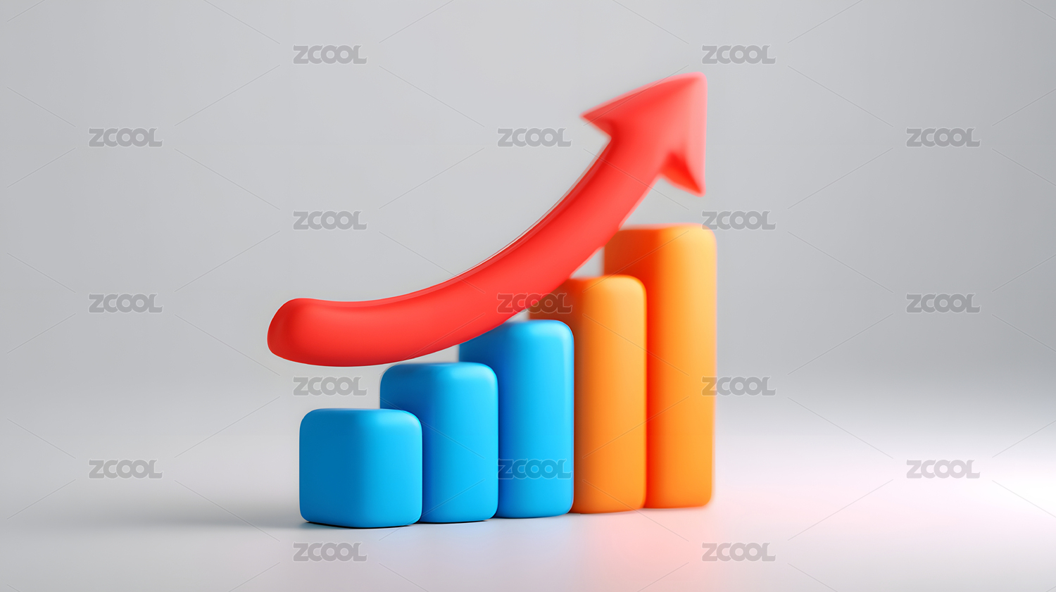 红色立体上升箭头与柱状图组合图