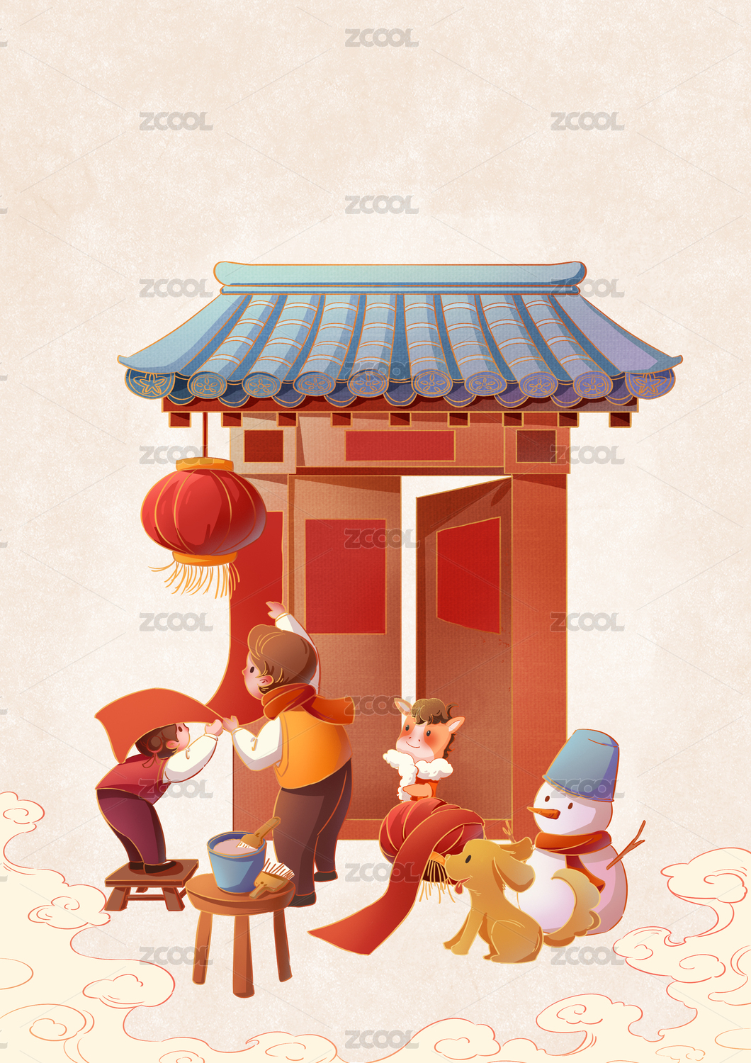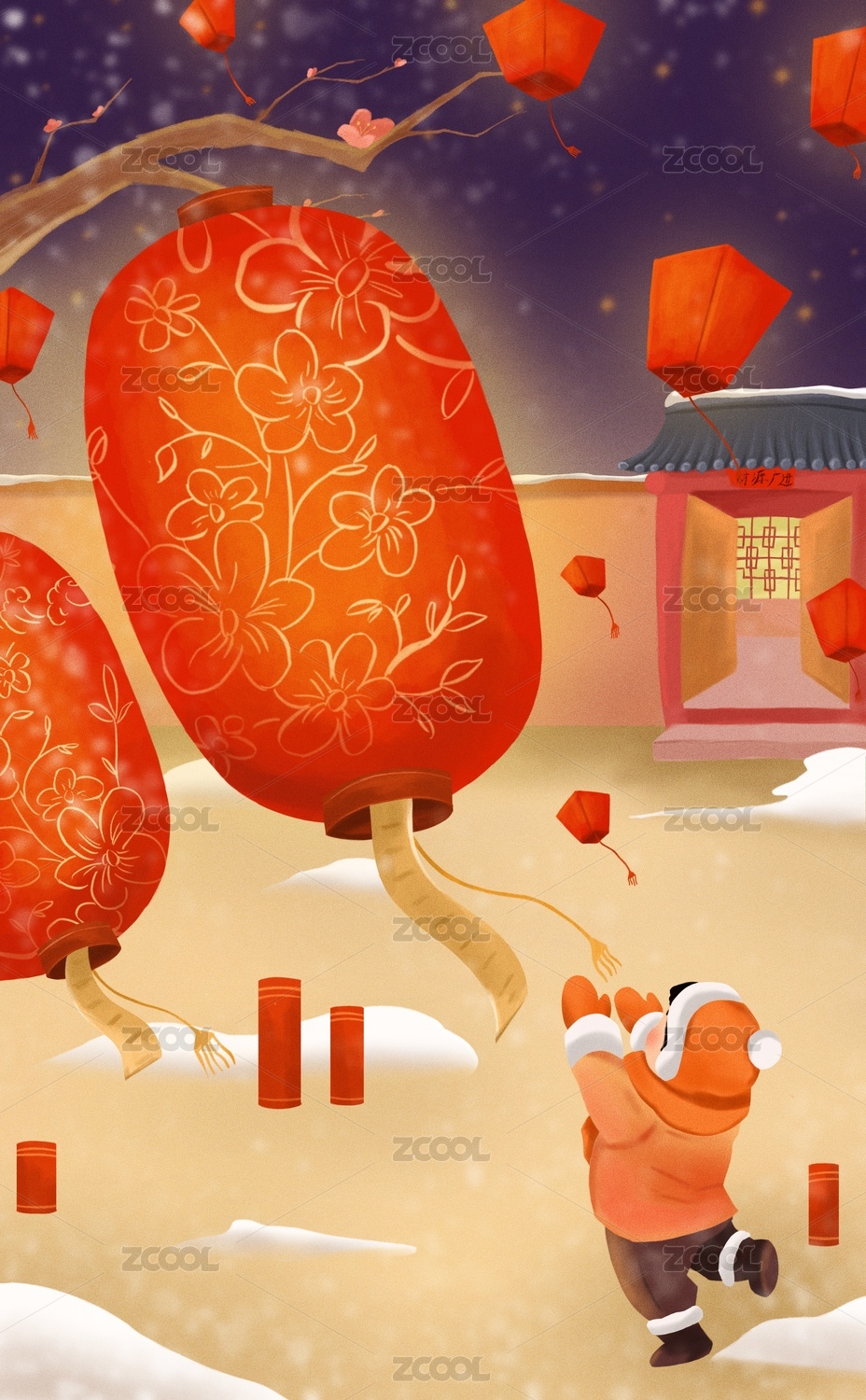 灯笼,红火,春节,除夕,夜晚,背景,小年,财神,海报,雪地