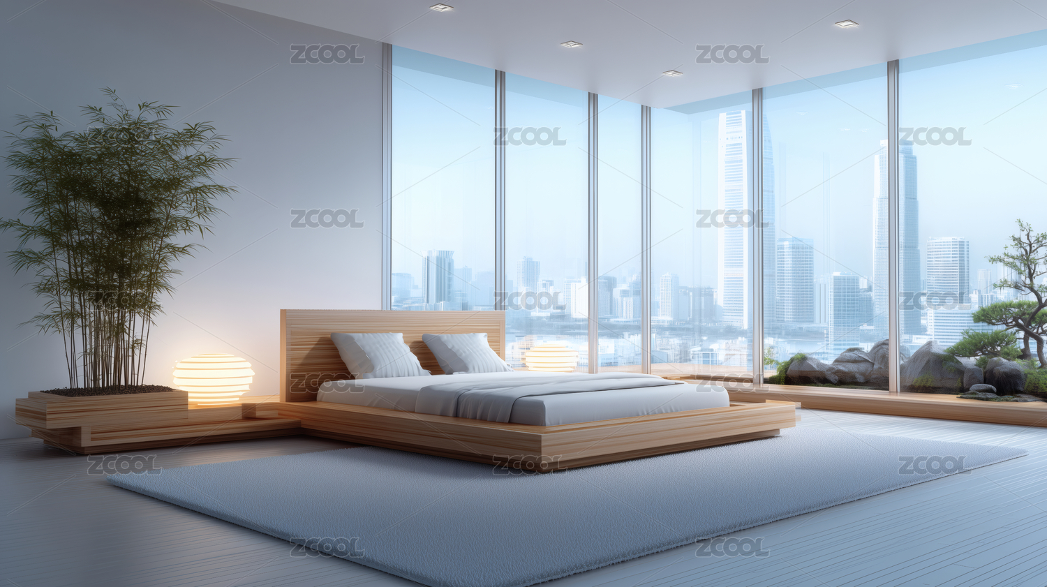 平台床,中性色,大窗户,现代,创意,家居,房屋,景观,城市,极简