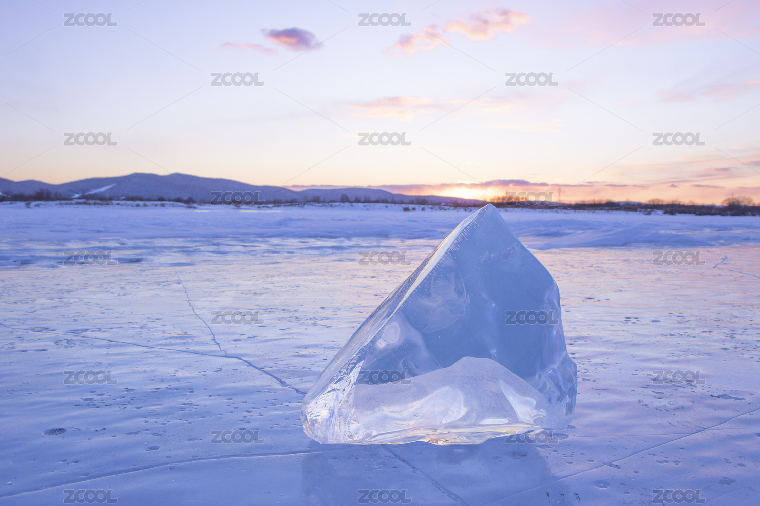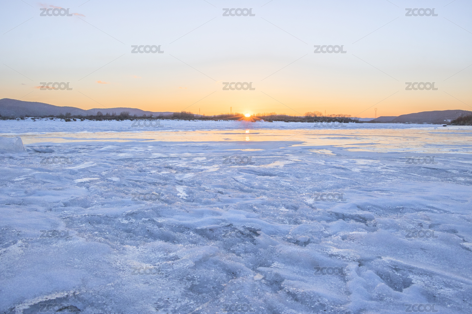 中国内蒙古自治区大兴安岭加格达奇区甘河上的冰块霞光