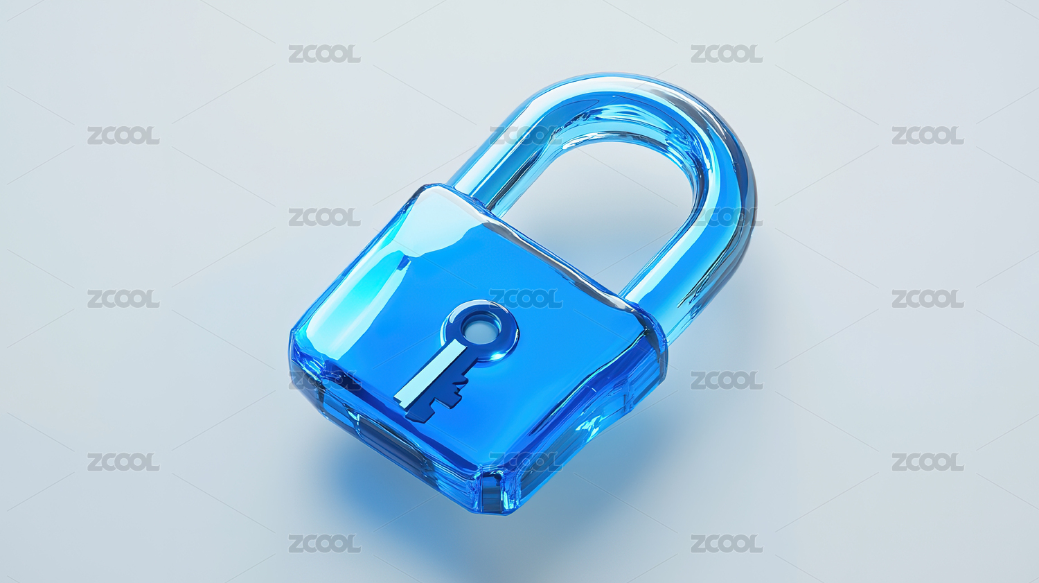 蓝色3D立体风安全锁锁孔玻璃锁头元素