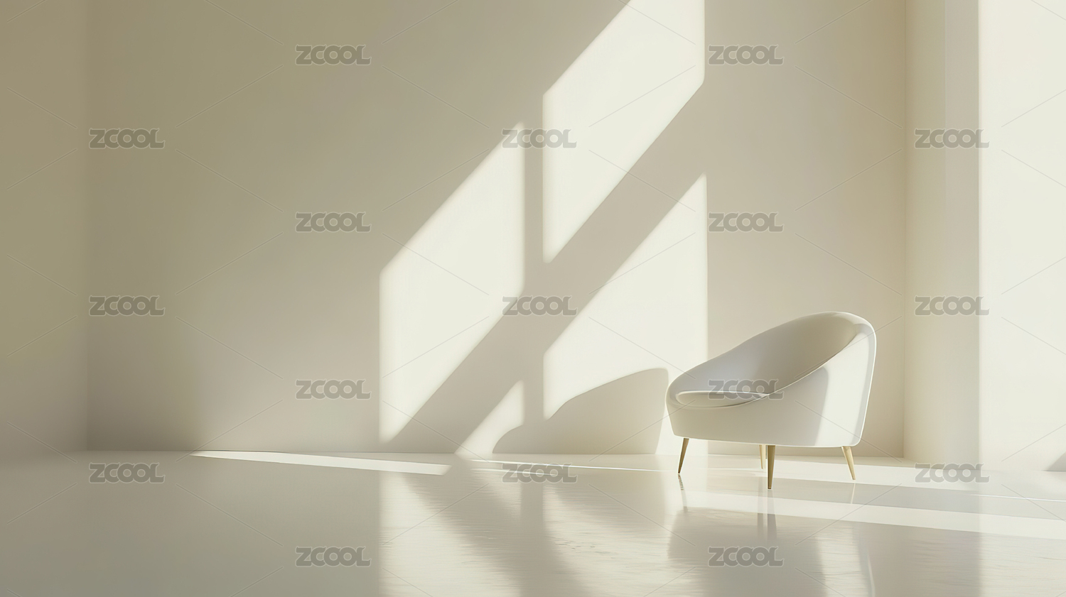 白色,墙面,地板,光滑质感,场景,灰色单人沙发,白色毯子,黑白相间,抱枕,沙发
