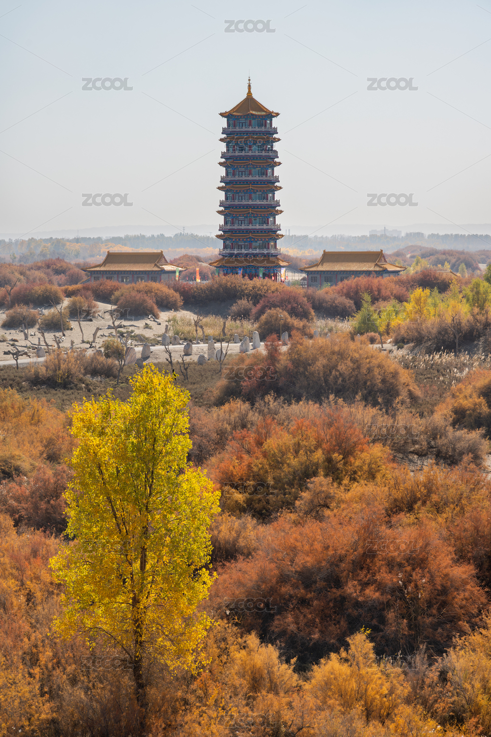 甘肃,金塔,红柳,柽柳,灌木,高塔,中式,传统,建筑,金塔胡杨林