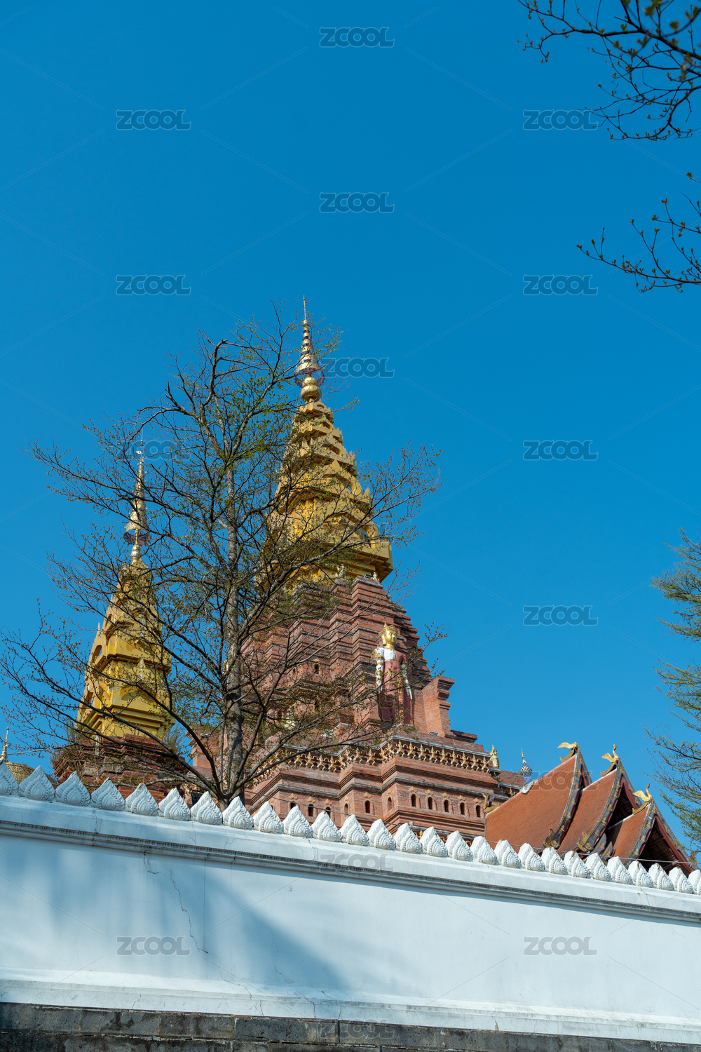 中国西双版纳曼听公园热带金碧辉煌寺庙