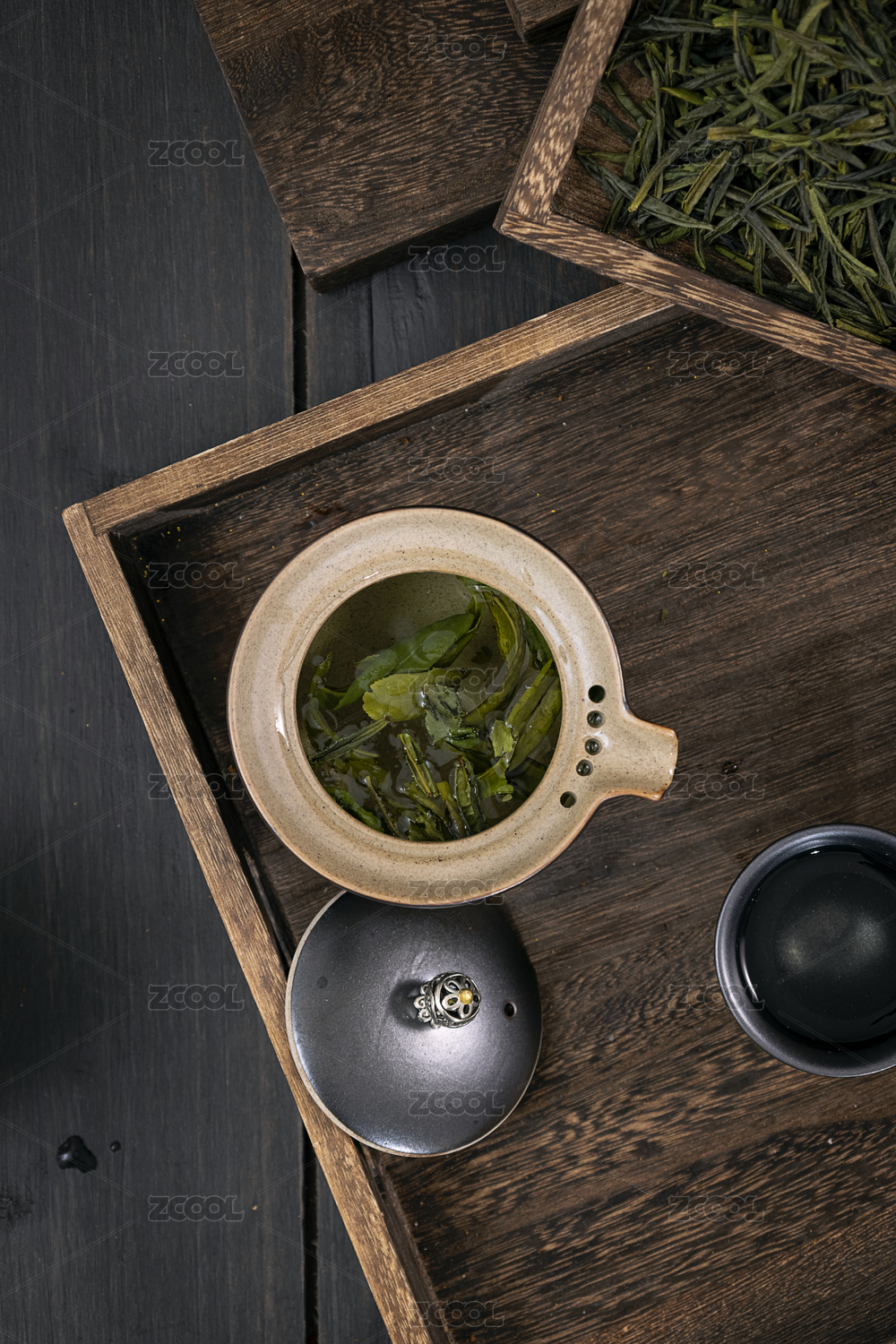 绿茶茶水暗调风格木背景