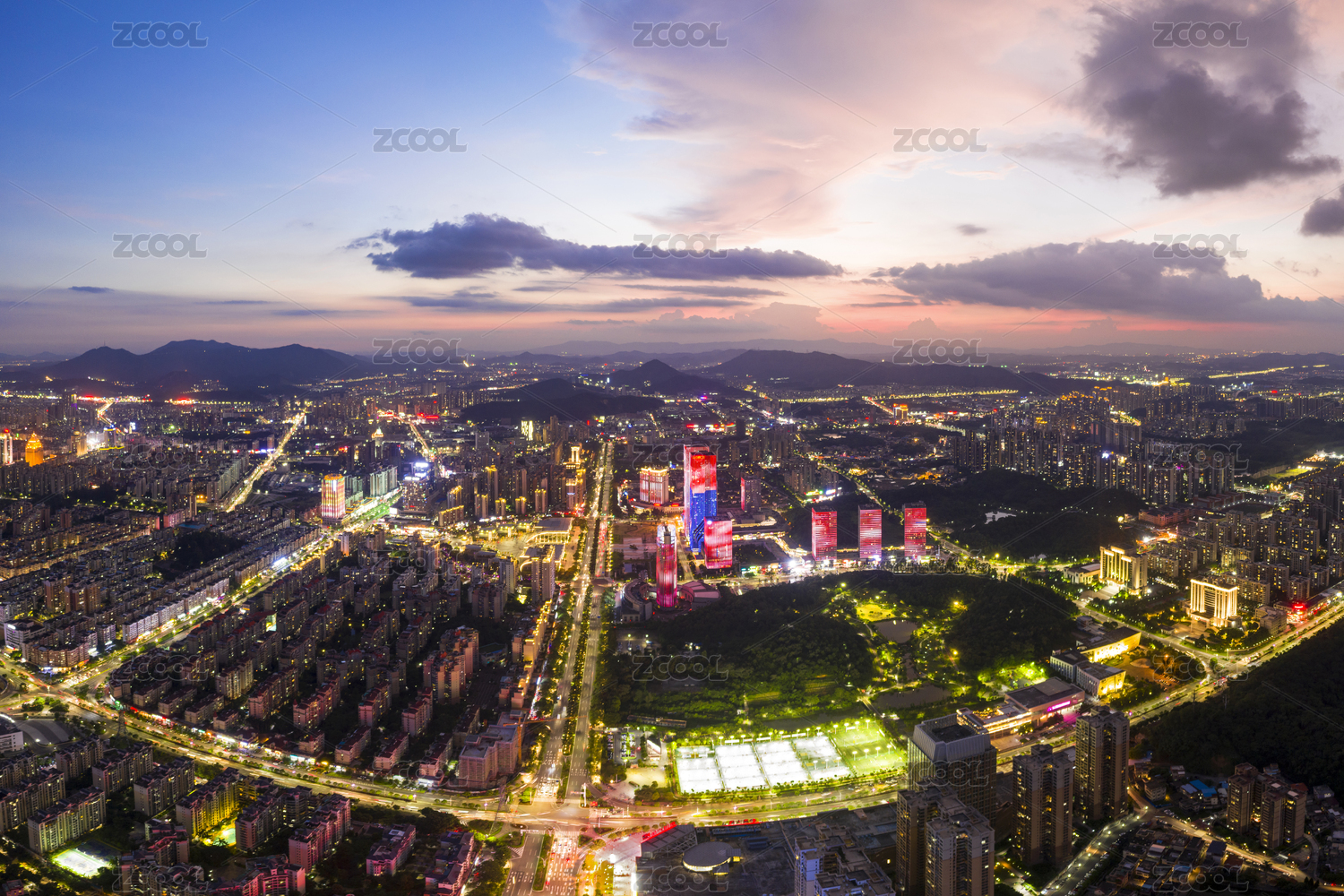 中国广东省深圳市龙岗区大运中心黄昏火烧云
