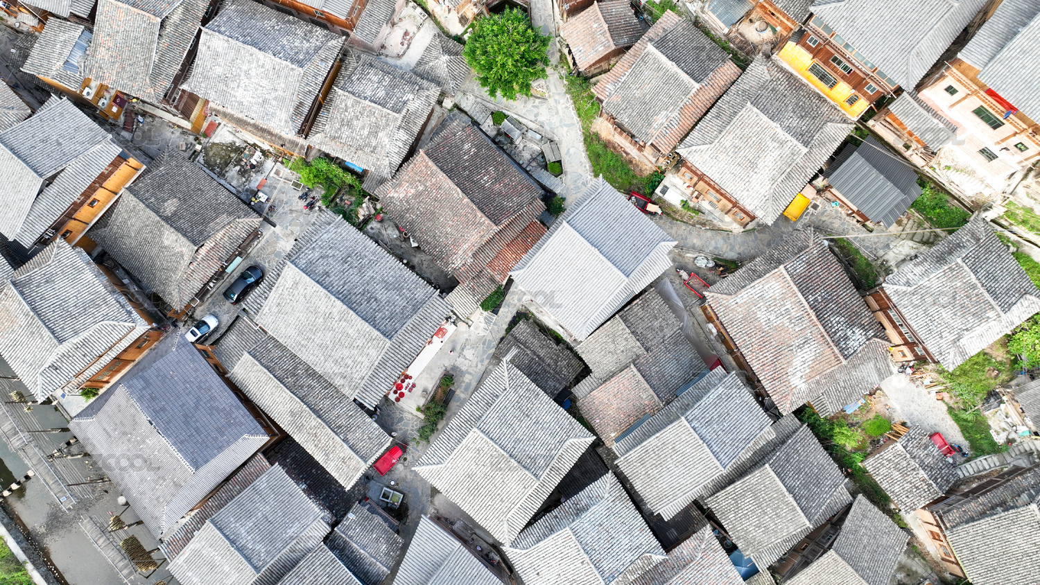 中国广西贺州黄姚古镇房屋建筑俯视航拍
