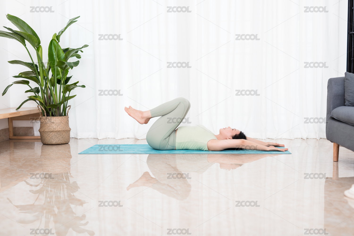 室内居家光亮环境正在练习瑜伽的亚洲女性