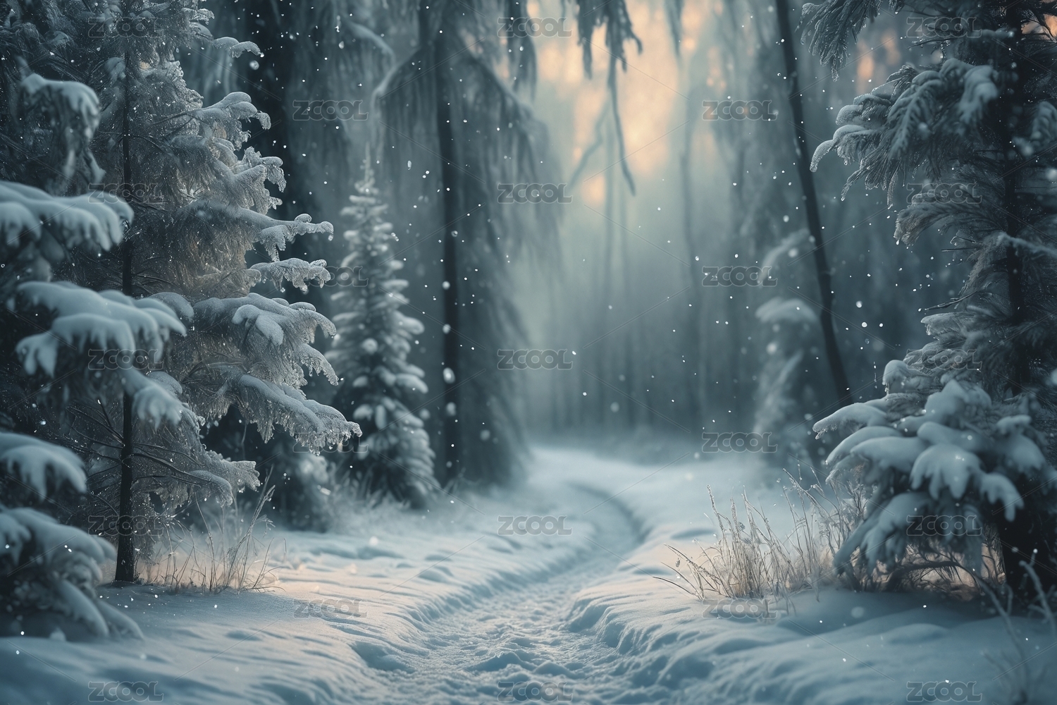 冬日松林雪景